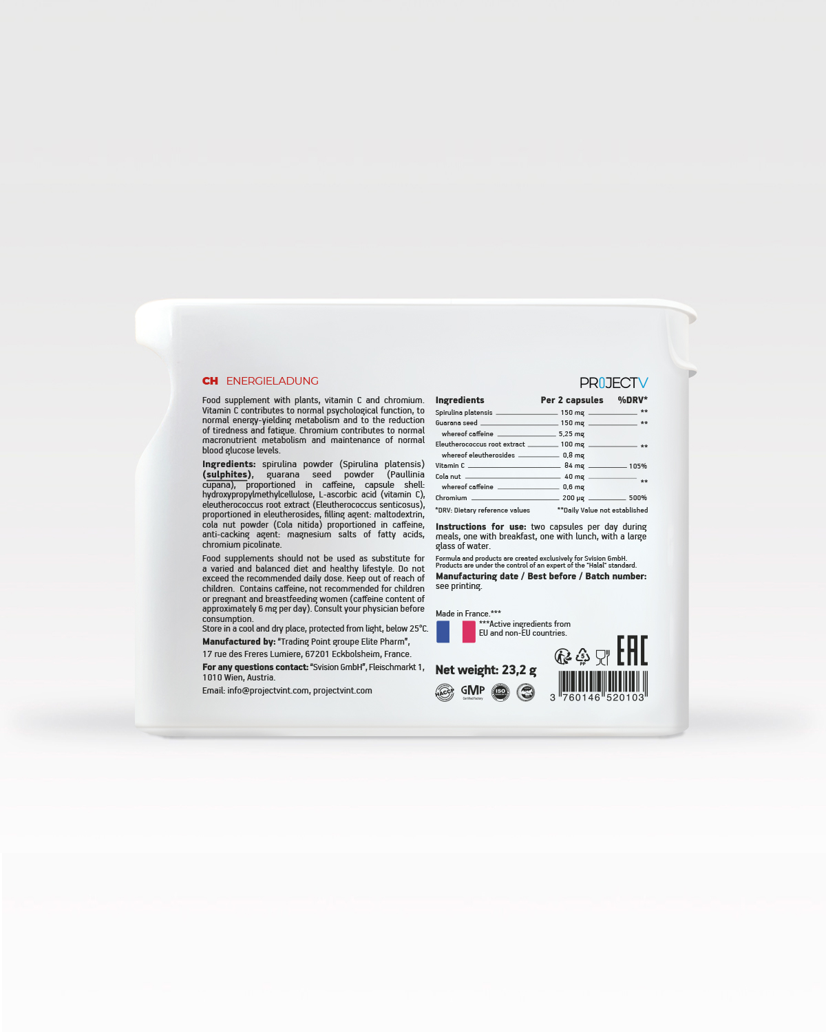 PROJECT V Classic Hit - CH Food Supplement - Charged and Energized - Box of 60 Capsules - Made in France, Genuine