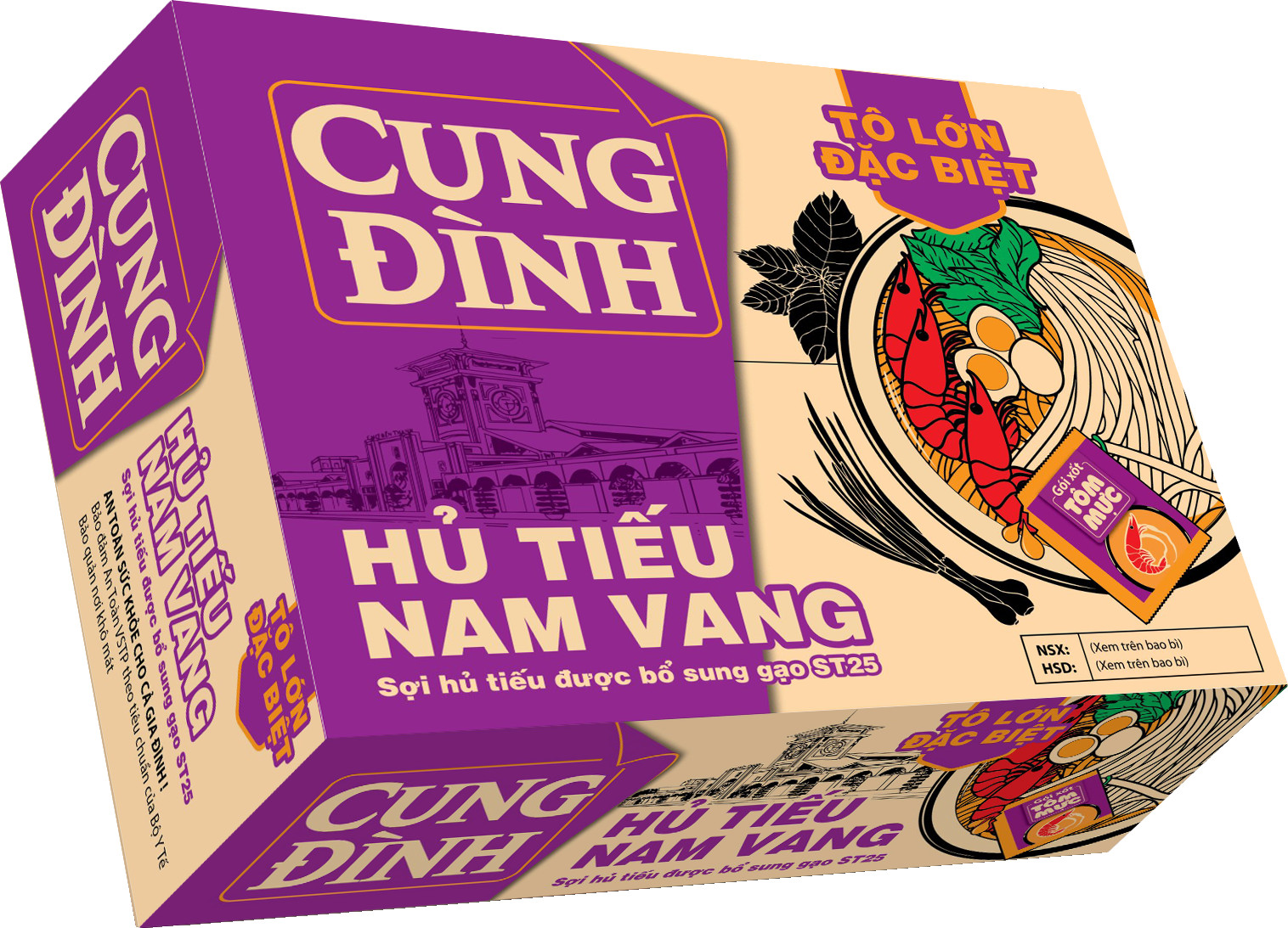 Hủ tiếu Cung Đình mang đến bữa ăn cực tiện lợi và thơm ngon. Hủ tiếu Nam Vang Cung Đình là sản phẩm hủ tiếu ăn liền hương vị hủ tiếu Nam Vang đặc trưng