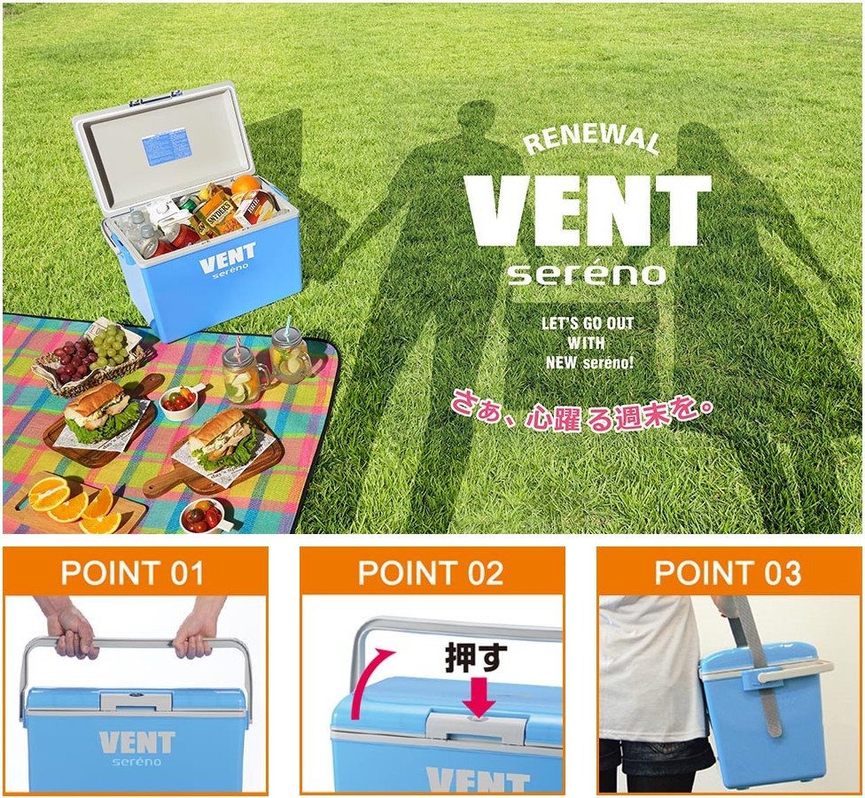 Thùng đá giữ nhiệt đa năng Vent Sereno 50L, tay cầm thu~kéo gọn nhẹ bằng nhôm chống gỉ sét cho phép di chuyển dễ dàng - nội địa Nhật Bản * Chất liệu: Nắp /thân /tay