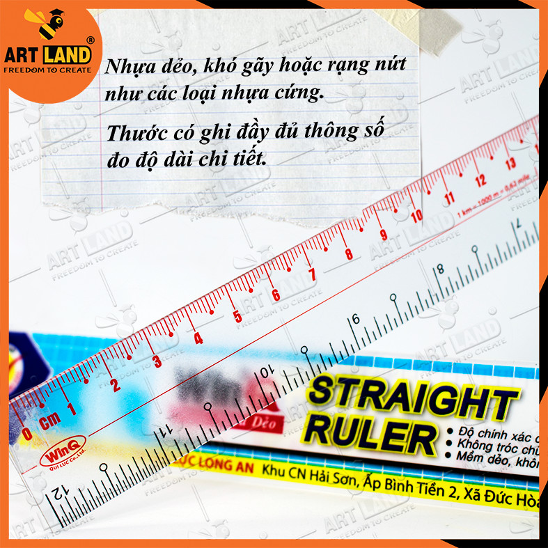 Thước thẳng có vạch kẻ chia kích thước chính xác, không bị tróc các chữ số. Thích hợp cho mọi đối tượng, cho nhiều mục đích sử dụng khác nhau. Thước trong suốt, mềm dẻo,