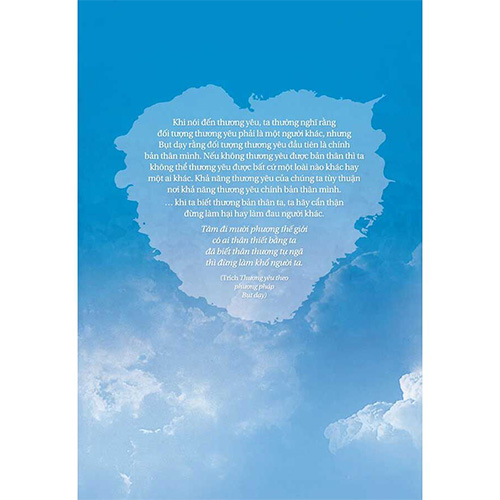 Khi nói đến thương yêu, ta hay nghĩ rằng đối tượng thương yêu là một người khác. Từ nhỏ chúng ta cũng được dạy rằng phải yêu thương người khác, thậm chí đến quên mình, đó được ca ngợi là đức hy sinh. Nhưng Bụt dạy rằng đối tượng thương yêu đầu tiên phải là chính bản thân mình. Nếu không thương yêu được bản thân thì ta không thể thương yêu được bất cứ ai khác.