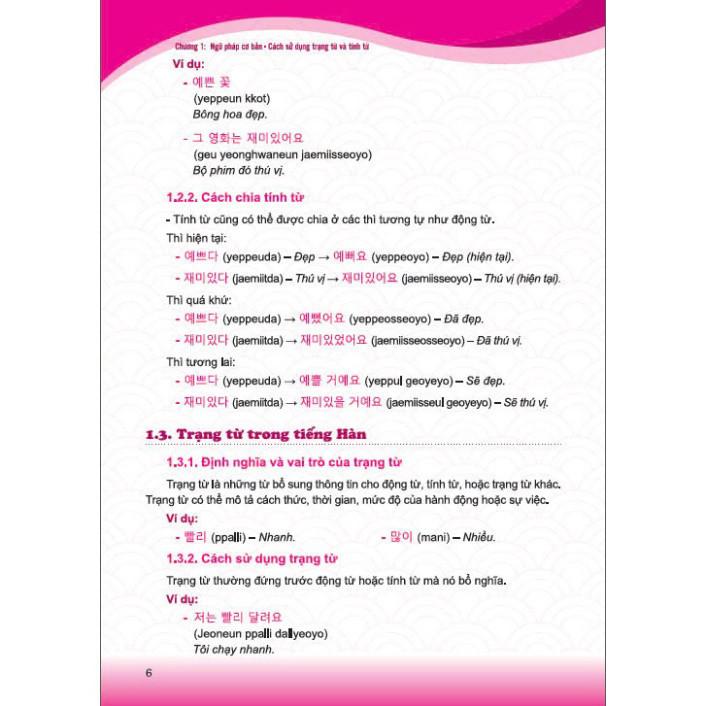 Nội dung sách bao gồm các bài học về ngữ pháp, từ vựng và các mẫu hội thoại thực tế. Từng chương được xây dựng để bạn dần nắm vững các chủ điểm quan trọng như cách sử dụng câu phức, câu điều kiện, kính ngữ, và cách biểu đạt cảm xúc, suy nghĩ trong nhiều bối cảnh khác nhau. Bên cạnh đó, bạn sẽ được tiếp cận với các chủ đề phong phú về văn hóa Hàn Quốc, từ phong tục tập quán, lối sống, cho đến các giá trị truyền thống và hiện đại. Những kiến thức này không chỉ giúp bạn hiểu sâu hơn về ngôn ngữ mà còn kết nối với văn hóa và con người Hàn Quốc một cách chân thực hơn.