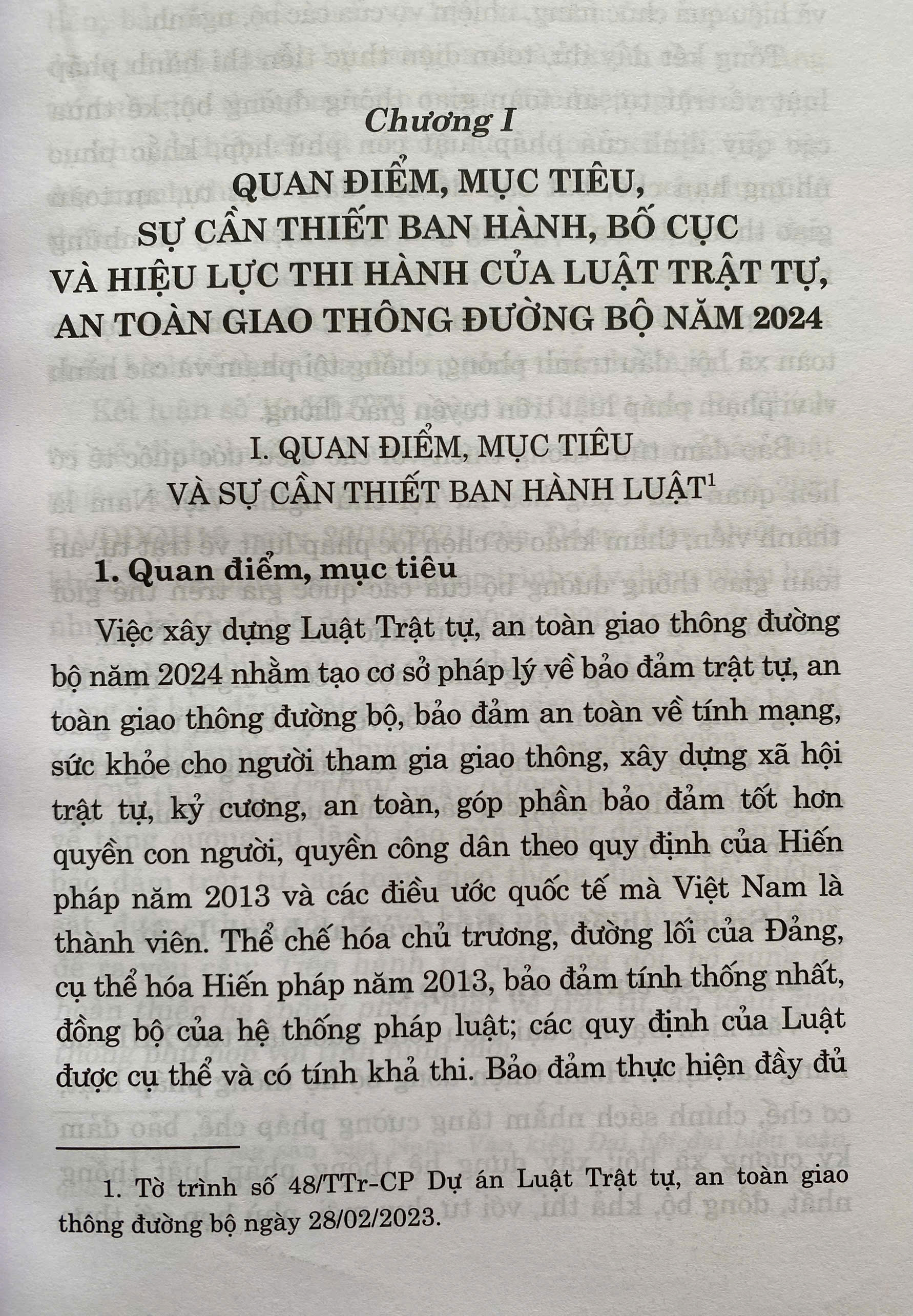 Luật Trật tự, an toàn giao thông đường bộ năm 2024 được ban hành tạo cơ sở pháp lý về bảo đảm trật tự, an toàn giao thông đường bộ, khắc phục những hạn chế, vướng mắc, bất cập của Luật Giao thông đường bộ năm 2008 (sửa đổi, bổ sung năm 2018, 2019, 2023), tạo hành lang pháp lý bảo đảm tính mạng, sức khỏe, tài sản của người dân khi tham gia giao thông; xây dựng xã hội trật tự, kỷ cương, an toàn, góp phần bảo đảm tốt quyền con người, quyền công dân theo quy định của Hiến pháp năm 2013 và cam kết thực hiện các điều ước quốc tế mà Việt Nam là thành viên.