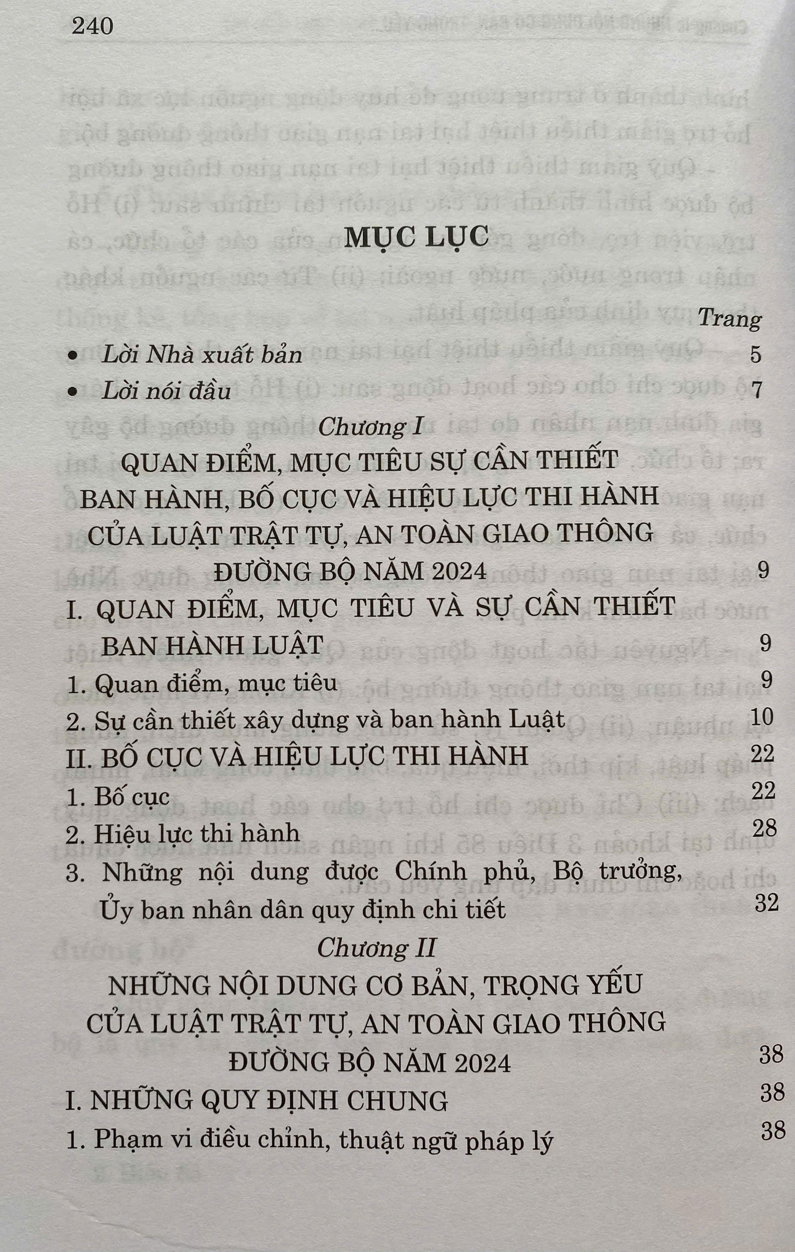 Nhằm góp phần tuyên truyền, phổ biến những nội dung cơ bản của Luật Trật tự, an toàn giao thông đường bộ năm 2024, Nhà xuất bản Chính trị quốc gia Sự thật xuất bản cuốn sách Tìm hiểu Luật Trật tự, an toàn giao thông đường bộ năm 2024 do Luật sư Trương Ngọc Liêu biên soạn. Qua việc phân tích ngắn gọn nội dung trong từng điều luật (có so sánh, đối chiếu với các quy định của Luật Giao thông đường bộ năm 2008 (sửa đối, bổ sung năm 2018, 2019, 2023)), cuốn sách sẽ giúp bạn đọc dễ dàng tìm hiếu và nắm bắt được các quy định của Luật Trật tự, an toàn giao thông đường bộ năm 2024.