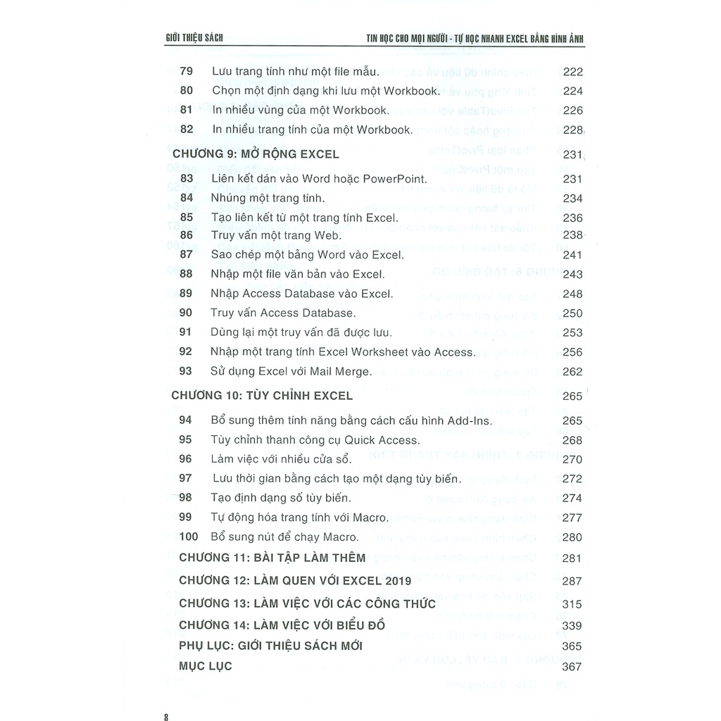 Excel Dành Cho Người Bắt Đầu Sách trình bày qua 14 chương với các hướng dẫn từng bước giúp các bạn tiết kiệm thời gian cũng như đạt năng suất hơn khi làm việc với