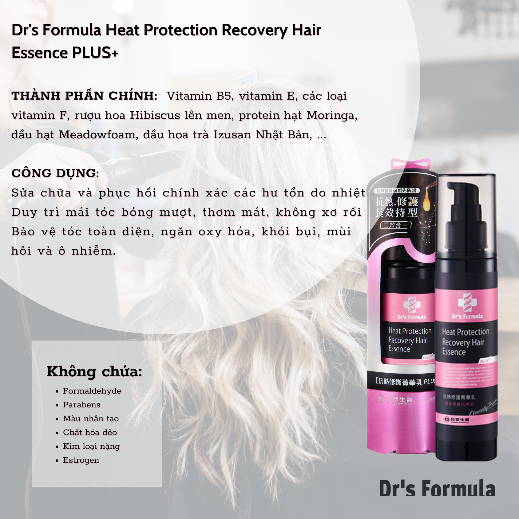 TÊN SẢN PHẨM: Tinh Chất Chăm Sóc Phục Hồi Bảo Vệ Tóc Trước Tác Động Nhiệt Dr's Formula Heat Protection Recovery Hair Essence