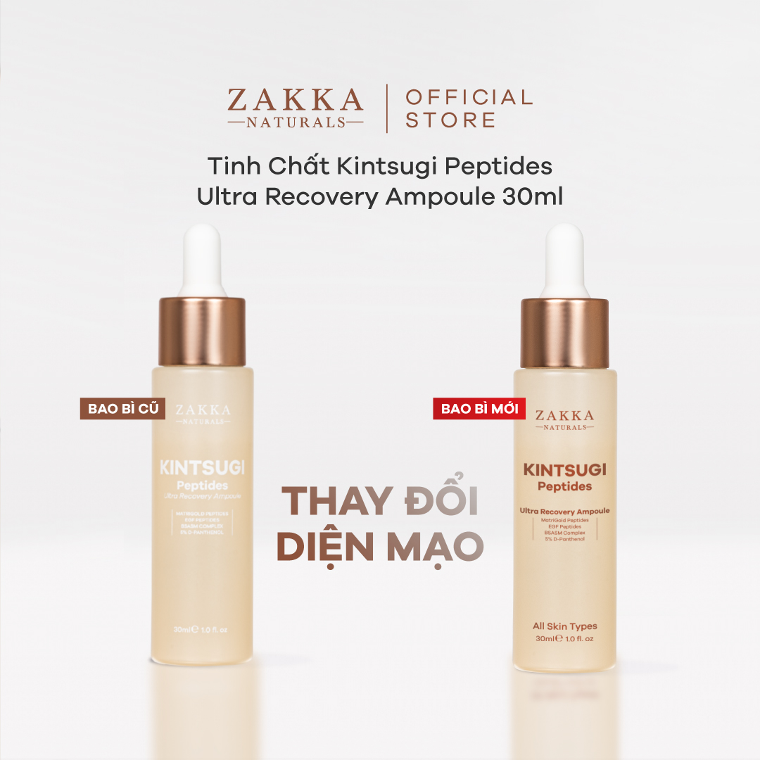 Tinh Chất Phục Hồi Độ ẩm Chuyên Sâu & Lành Tổn Thương Zakka Naturals Kintsugi Peptides Ultra Recovery Ampoule. Trong đó, 5 loại HA đa tầng giúp dưỡng ẩm khắp các tầng da và hỗ trợ phục hồi. Da được cải thiện và tái tạo nhanh chóng để làm lành vết thương nhờ các lợi ích của 6 loại peptides. Cùng với 8 loại chiết xuất thực vật hỗ trợ làm dịu ngay tức thì, và giảm viêm. 7 loại amino acids cấp ẩm và duy trì độ ẩm sâu trong da , đồng thời giúp quá trình phục hồi và làm lành da bị tổn thương diễn ra nhanh hơn.