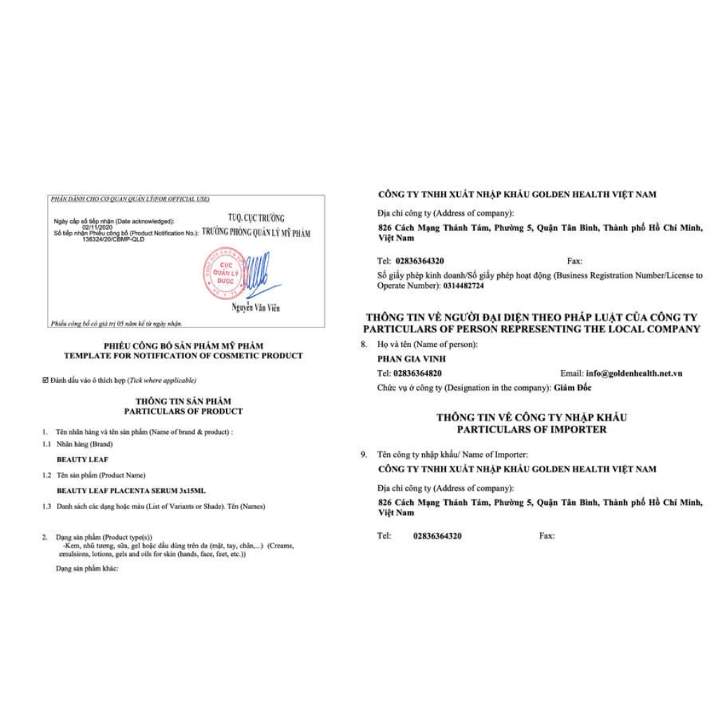 Tinh Chất Serum Dưỡng Trắng Da Nhau Thai Cừu Giúp Làm Mờ Thâm,Nám,Tàn Nhang,Ngăn Ngừa Lão Hóa,Cung Cấp Vitamin Và Dưỡng Chất Nuôi Dưỡng Da Trắng Hồng Beauty Leaf 15ml - Nhập khẩu chính ngạch