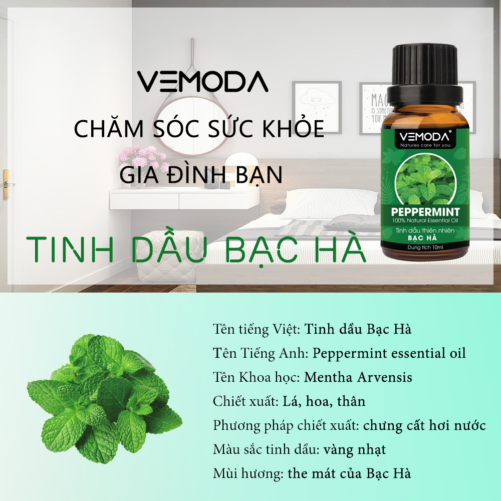 ✨Tinh dầu Bạc hà cao cấp. Peppermint Essential Oil 10ML. Tinh dầu xông phòng giúp thư giãn, kháng khuẩn, giải cảm, xua đuổi côn trùng, chăm sóc răng miệng. Tinh dầu thơm phòng cao cấp Vemoda
