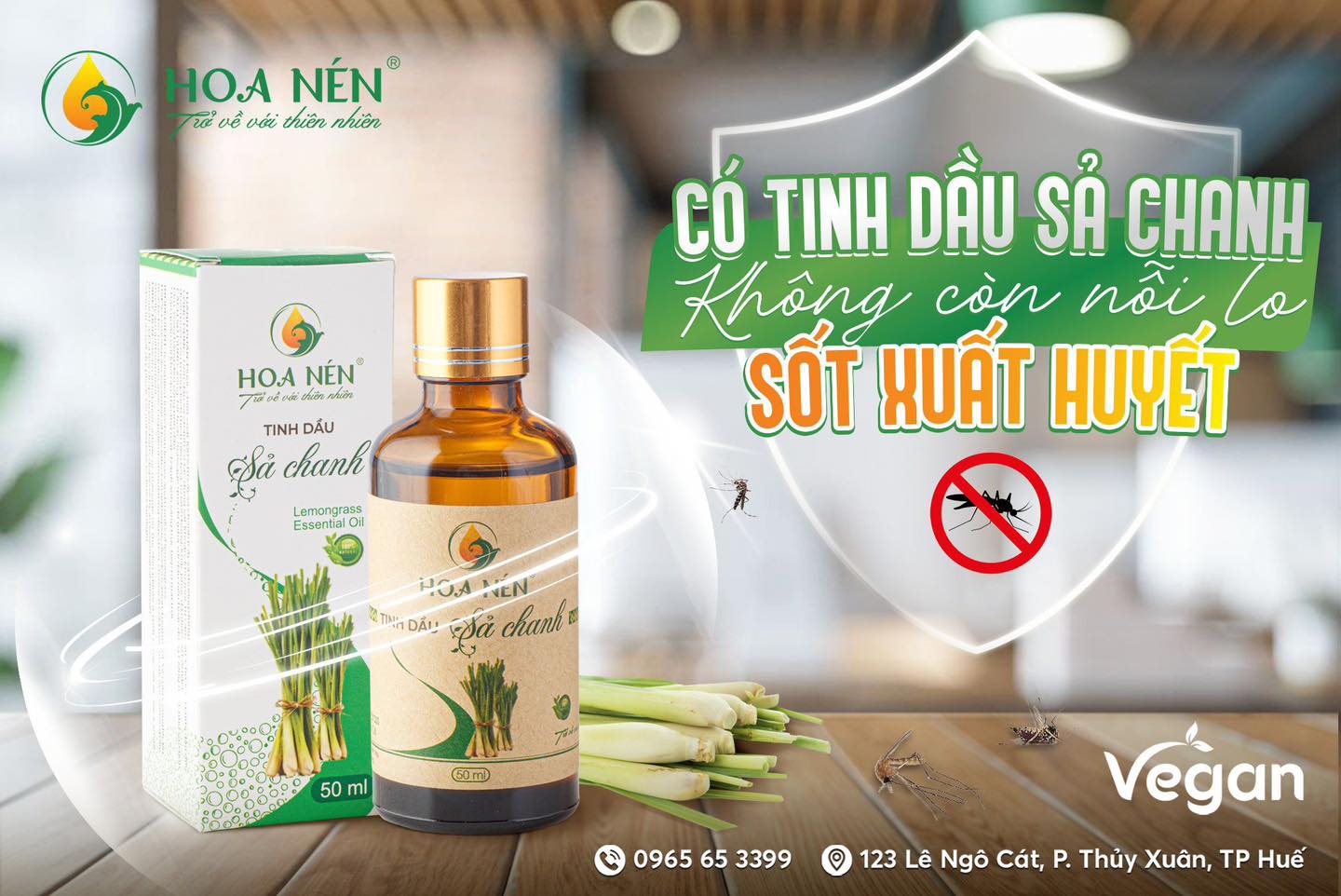 ✨Tinh dầu Sả Chanh nguyên chất 10ml - Hoa Nén - Vegan - Đuổi muỗi, giải cảm, thanh lọc không khí