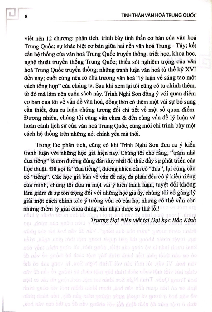 Tinh thần văn hóa Trung Quốc Cuốn sách bao gồm 12 chương: Chương 1: Tinh thần cơ bản của văn hóa TQ Chương 2: Sự khác biệt cơ bản giữa văn hóa TQ và văn