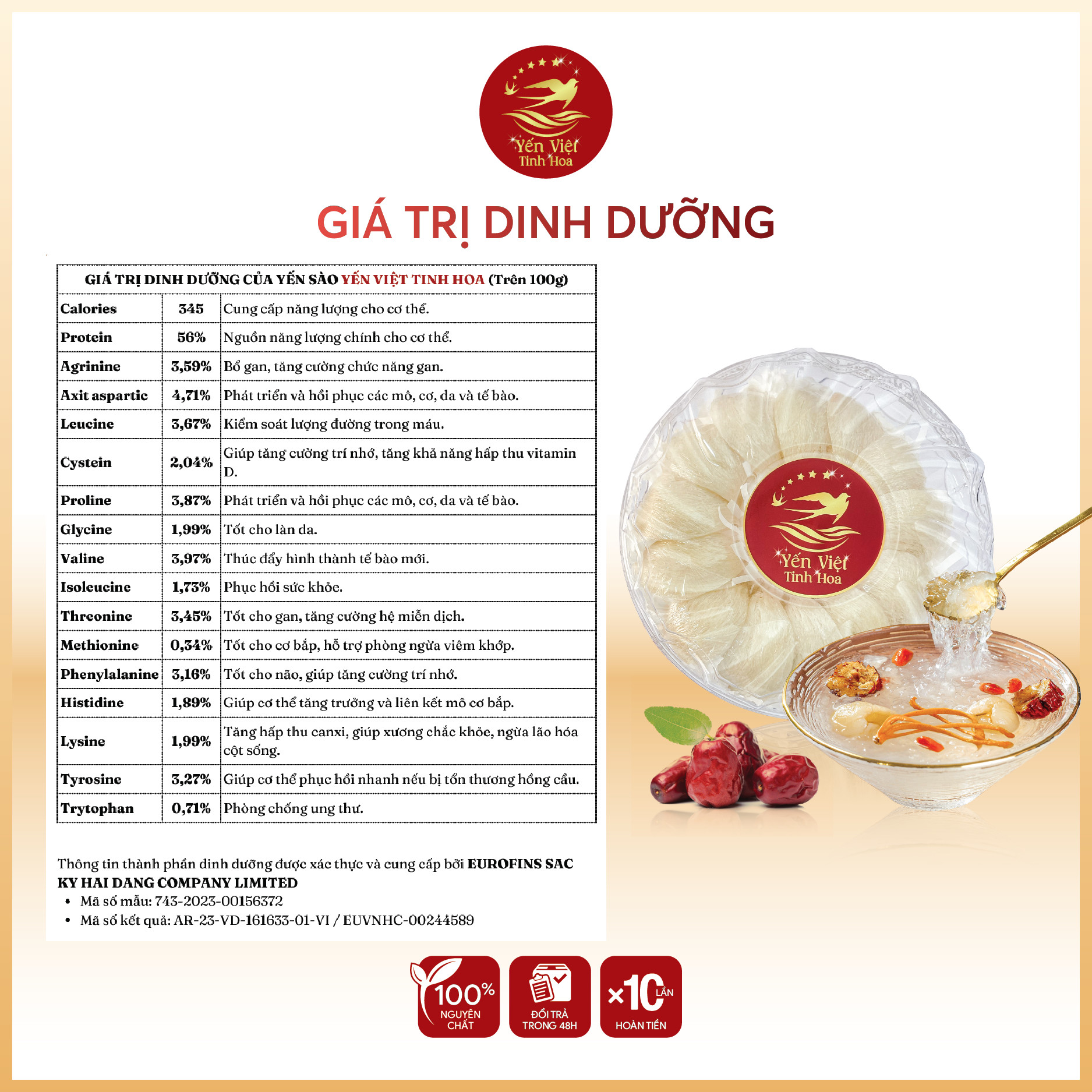 Tổ yến Tinh chế thượng hạng Yến Việt Tinh Hoa 100 gram - Hàng chính hãng   THÔNG TIN SẢN PHẨM