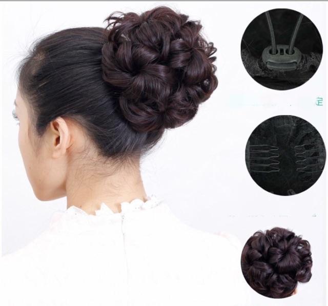 Tóc búi cột xù Chất liệu: tóc tơ nhân tạo cao cấp, sử dụng an toàn Tóc lỳ, không bị bóng, dây cột đàn hồi chắc chắn.