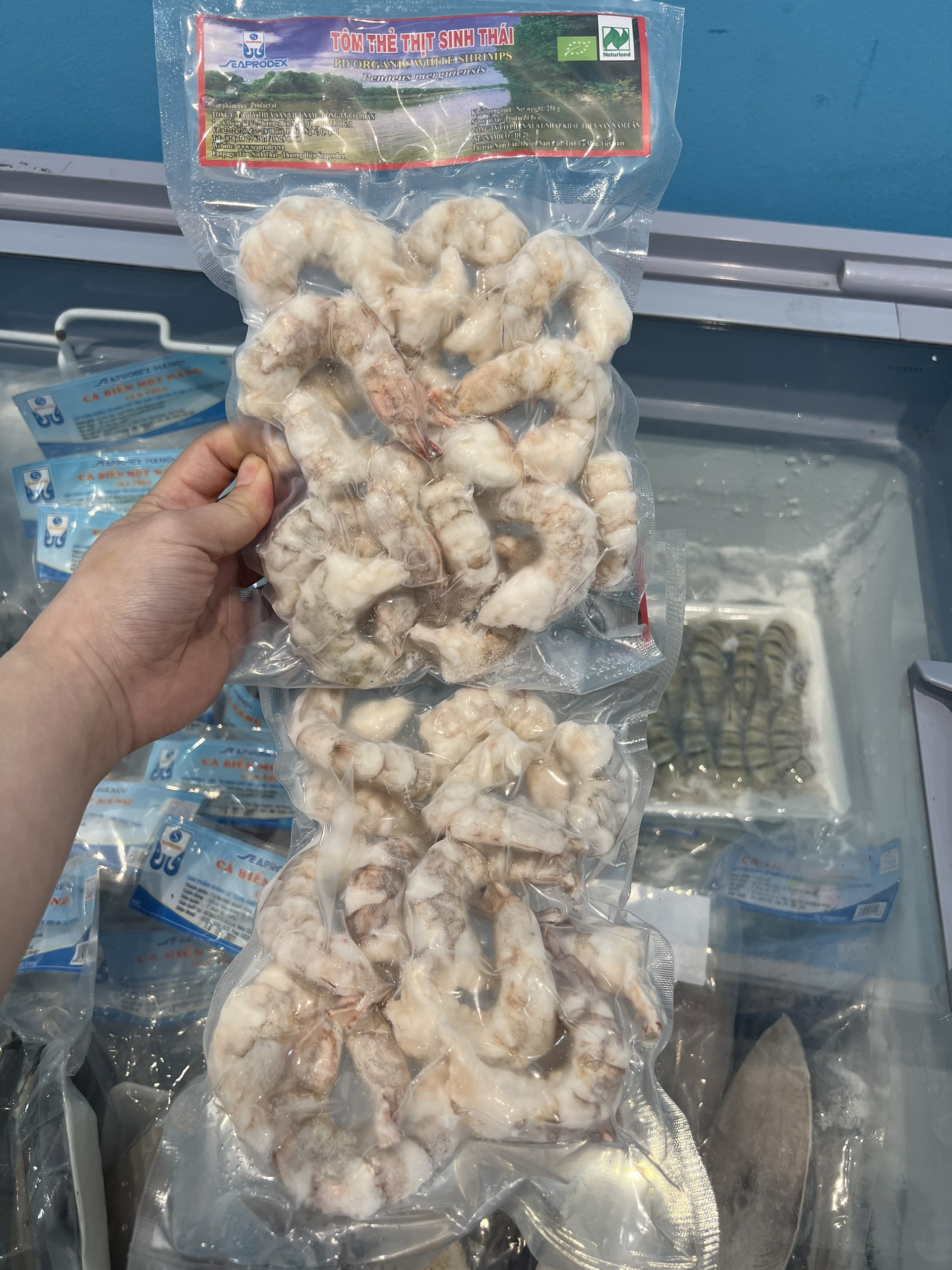 ***Tôm thẻ thịt sinh thái Seaprodex được đóng túi, cấp đông lúc tươi, tôm khi rã đông đảm bảo vẫn giữ được độ ngon và vị ngọt của tôm.