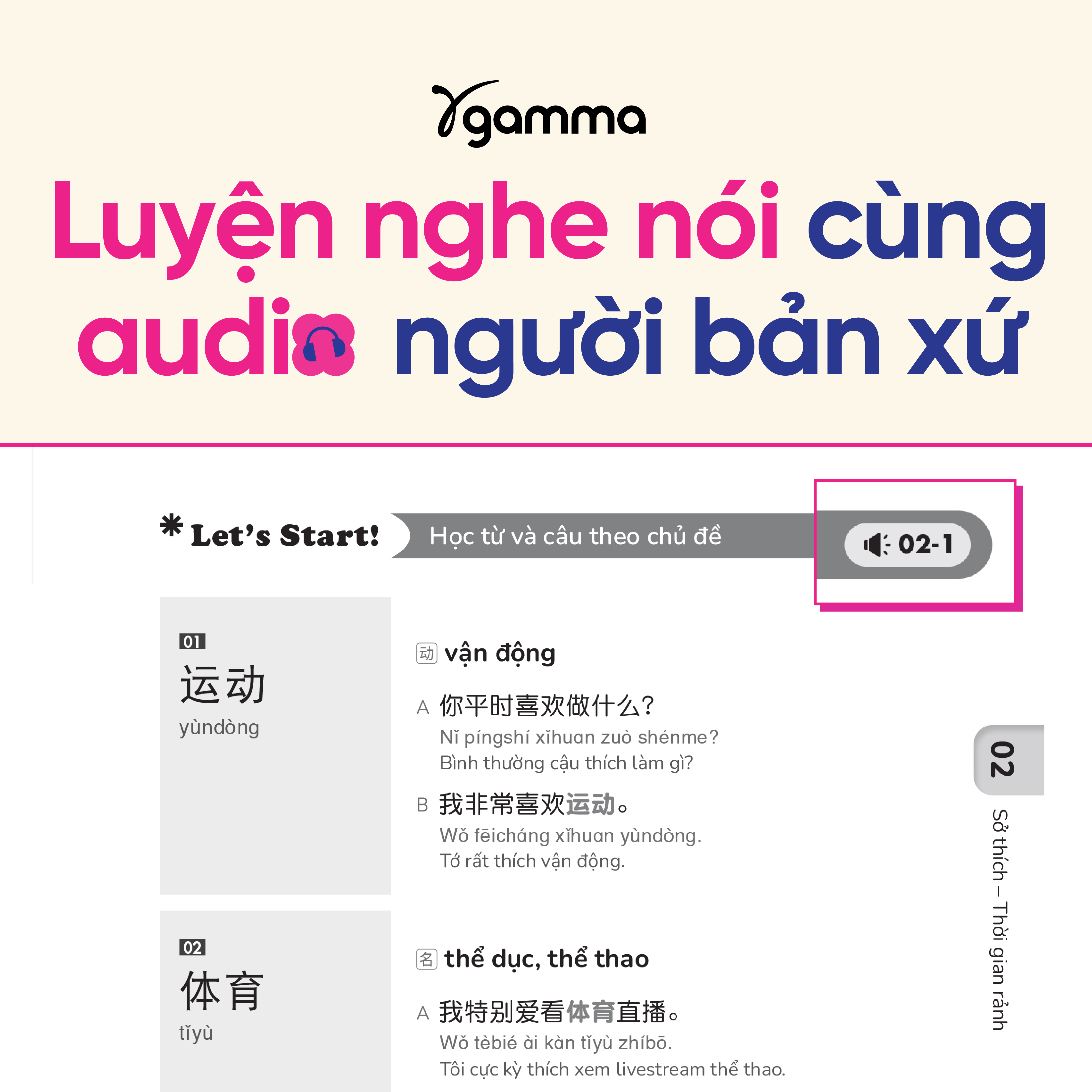Sách gồm 8 Unit, mỗi Unit xoay quanh một chủ đề quen thuộc, cung cấp các từ vựng liên quan kèm hội thoại ngắn, giúp người học “hiểu đúng – dùng trúng” từng từ trong ngữ cảnh thực tế. Kèm theo mỗi bài học là file nghe chuẩn giọng bản xứ, hỗ trợ người học luyện phát âm và phản xạ giao tiếp. Đặc biệt, sách còn giới thiệu 40 lượng từ cơ bản – một trong những yếu tố quan trọng để hình thành câu và diễn đạt tự nhiên trong tiếng Trung.