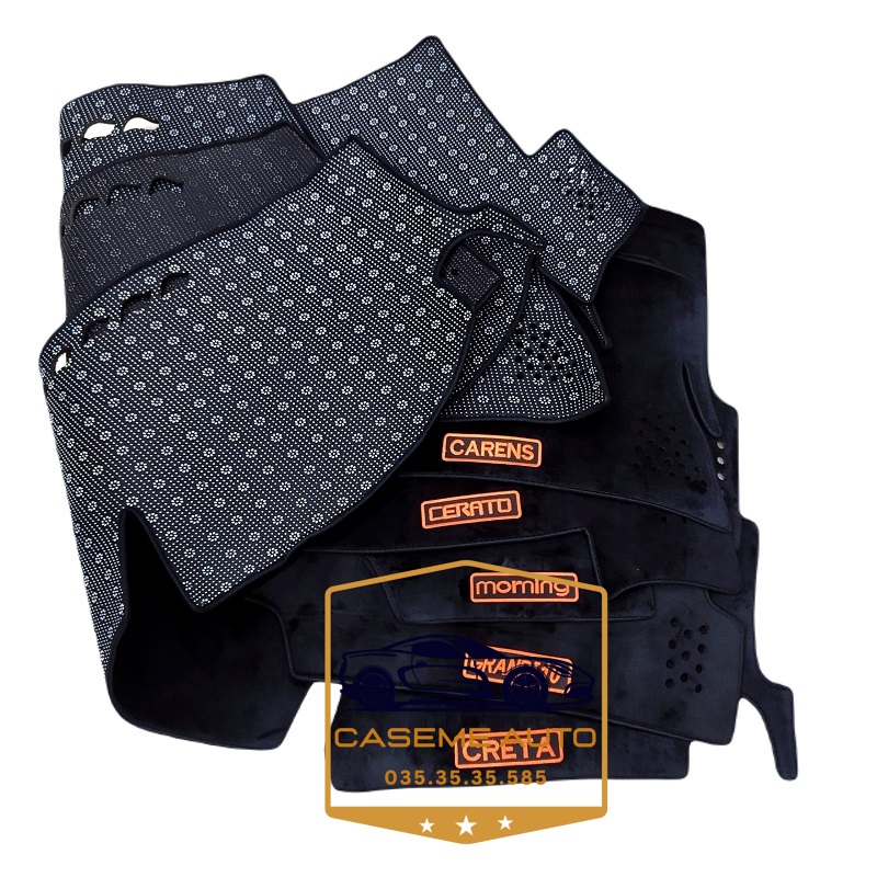 I - THẢM TAPLO NHUNG LÔNG CỪU Thảm chống nóng taplo lông cừu loại bỏ hoàn toàn ánh sáng phản quang từ mặt taplo lên kính lái, làm trong kính lái, giúp lái xe an toàn nhất là trong điều kiện thời tiết nắng nóng. .Giảm thiểu sự lão hóa, nứt nẻ của bề mặt taplo khi tiếp xúc với ánh nắng mặt trời trực tiếp ở nhiệt độ cao trong thời gian dài. Tăng thẩm mỹ cho bề mặt taplo nhờ thiết kế thời trang liên tục được thay đổi phù hợp thị hiếu người sử dụng và sử dụng chất liệu cao cấp. Ngoài ra, bảo vệ bề mặt taplo khỏi trầy xước do cọ xát với đồ vật trên xe Thiết kế: Thảm chống nắng taplo lông cừu được cắt định hình hoàn toàn tự động trên công nghệ 3D, đảm bảo chuẩn xác từng mm form taplo và khớp từng model xe, đời xe. Sản phẩm được thiết kế hết sức chi tiết dựa trên thiết kế taplo của nhà sản xuất, đảm bảo trùng khớp hoàn toàn tất cả khe thông gió, bộ phận cảm biến nguyên bản của xe. Chất liệu: Chất liệu thảm lông cừu có khả năng hấp thụ nhiệt chống nóng, thân thiện môi trường, chất liệu đảm bảo an toàn cho người sử dụng (không tạo khí độc ngay cả trong điều kiện nhiệt độ cao > 60 độ C trong thời gian dài). Liên tục cập nhật nhiều loại chất liệu với các thiết kế khác nhau, tăng sự lựa chọn cho khách hàng và tính thẩm mỹ cho bề mặt taplo. II - THẢM TAPLO DA VÂN CARBON Chất liệu da PU cao cấp, bền bỉ, chống nhăn, chống bám bụi, chống nước hiệu quả. Cấu tạo gồm 3 lớp: ️ Lớp da vân carbon trên cùng. ️ Lớp vật liệu chống nóng – cách nhiệt ở giữa. ️ Lớp đế hạt tự bám thông minh ở cuối. Vân carbon nổi trên bề mặt độc đáo, sang trọng, được đánh giá sở hữu vẻ đẹp thẩm mỹ cao nhất trong các loại thảm taplo hiện nay. Thảm taplo vân carbon được cắt, may định hình 3D chuẩn xác theo từng model xe, đường chỉ và các mối nối tỉ mỉ, sắc nét. Các điểm lỗ thông gió, loa được bố trí chuẩn, đảm bảo độ trùng khớp theo cấu tạo nguyên bản của xe. Mặt đáy của thảm taplo vân carbon được bố trí thêm một lớp chống trượt hiệu quả, giúp thảm cố định trên bề mặt taplo chắc chắn. Thảm taplo vân carbon ngăn ánh nắng gay gắt chiếu trực tiếp lên bề mặt taplo làm phát tán chất gây hại trong các bộ phận nhựa của xe, gây lão hóa, nứt nẻ nhựa taplo. Ngoài ra thảm còn có công dụng hạn chế tình trạng bề mặt taplo ô tô bị xước do cọ xát với đồ vật khác trên xe như chìa khóa, nước hoa, tượng trang trí ô tô,… giữ bề mặt taplo luôn đẹp như mới.