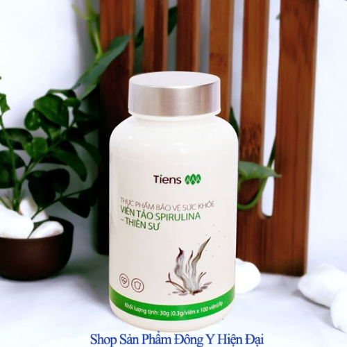 TPBVSK Viên Tảo Spirulina - Thiên Sư Quy cách: 30g (0,3g x 100 viên)/ lọ. Thành phần: Bột tảo spirulina  Công dụng: Bồi bổ cơ thể, hỗ trợ hạn chế quá trình oxi hóa, hỗ trợ tăng cường sức đề kháng cho cơ thể Đối tượng sử dụng: Người trưởng thành cần bồi bổ, cần tăng cường sức khỏe, tăng cường sức đề kháng cho cơ thể Cách dùng: Mỗi ngày uống 2-3 lần, mỗi lần 6 viên Bảo quản nơi khô ráo, thoáng mát, tránh ánh nắng trực tiếp Xuất xứ: Việt Nam Thực phẩm này không phải là thuốc và không có tác dụng thay thế thuốc chữa bệnh. Không sử dụng cho người mẫn cảm với bất kỳ thành phần nào của sản phẩm Số CBSP : Số: 4980/2020/ĐKSP Sản phẩm của Tiens nhận được rất nhiều chứng nhận của Việt Nam và Quốc tế về chất lượng sản phẩm như : Hala , FDA của Hoa Kỳ, Chứng nhận doanh nghiệp công nghệ cao, chứng nhận hệ thống quản lý an toàn thực phẩ