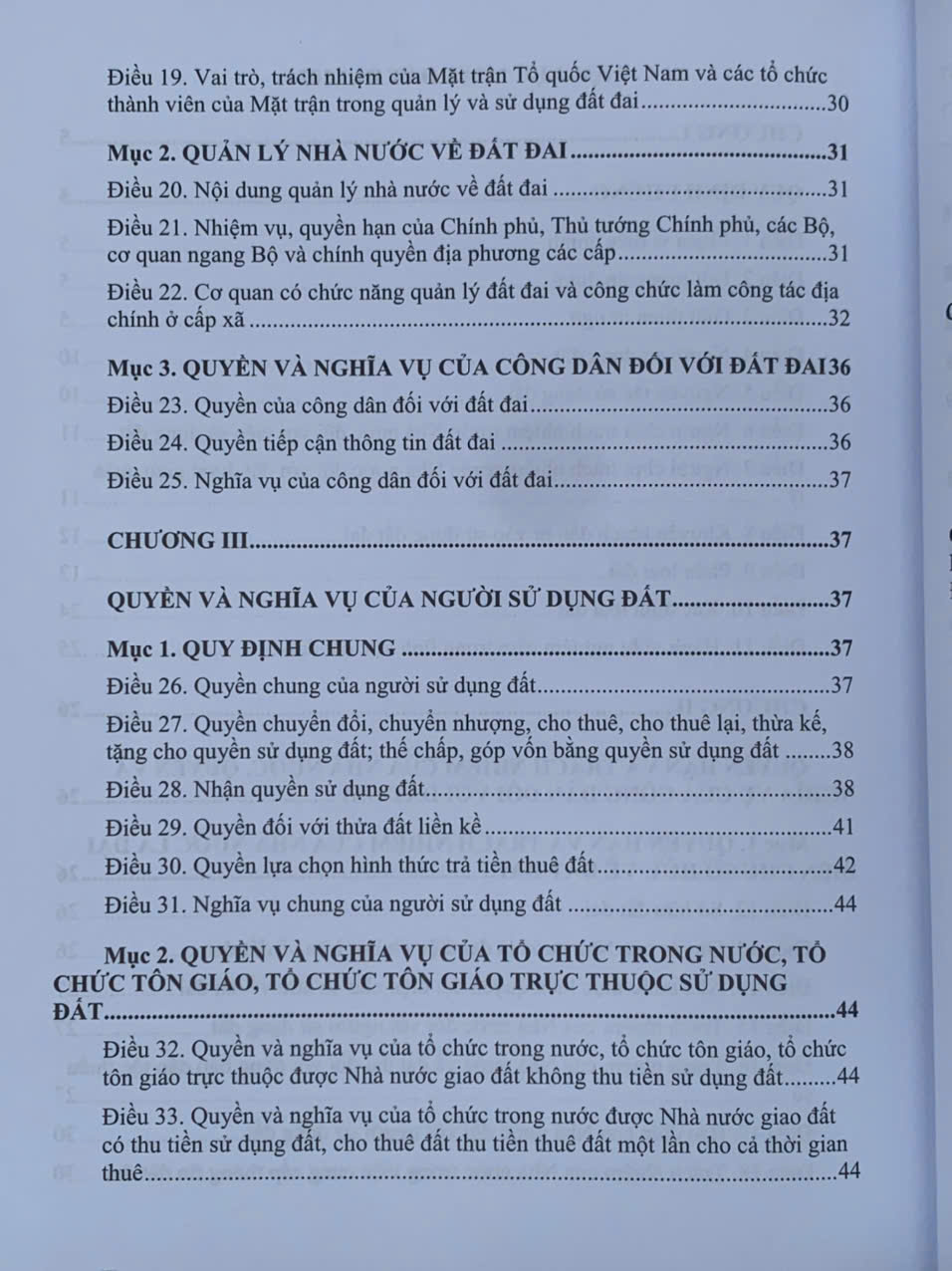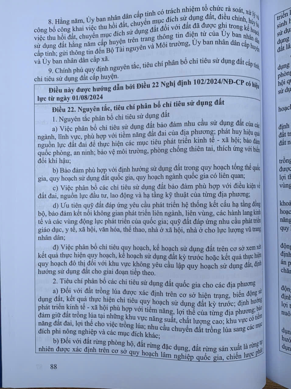 Ngày 18/01/2024, Quốc hội nước Cộng hòa xã hội chủ nghĩa Việt Nam thông qua Luật Đất đai số 31/2024/QH15, đã thể chế hóa đầy đủ, kịp thời các quan điểm, chủ trương của Đảng
