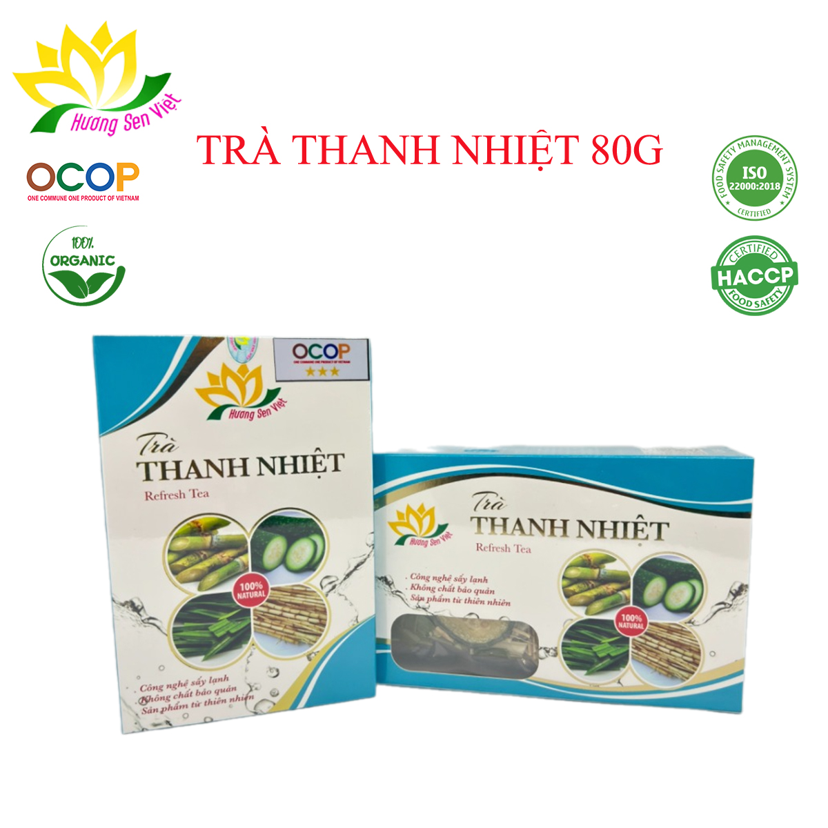 Thành phần: Rễ tranh, Mía lau, Bí đao, Lá dứa Công dụng: Được tạo ra từ những thành phần thiên nhiên, hương vị của Trà Thanh Nhiệt có mùi thơm nhẹ nhàng, giúp hỗ trợ
