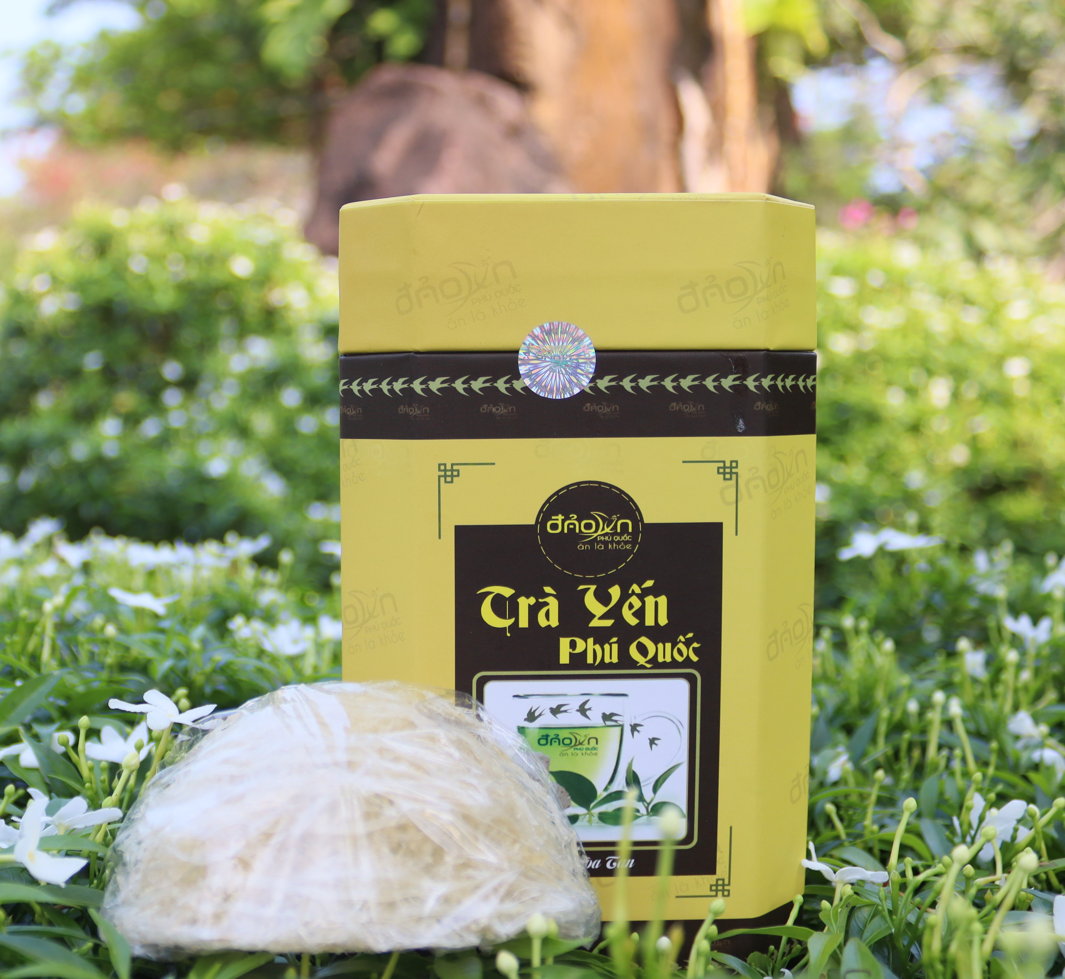 Mua tại Tiktok- Trà Yến Phú Quốc là gì? Trà yến phú quốc là đặc sản thơm ngon, bổ dưỡng của đảo Ngọc. Được kết hợp chủ yếu từ bột hương yến và bột trà xanh với tỷ lệ vàng tạo nên một mùi thơm nhẹ nhàng, kích thích vị giác, tăng sảng khoái tinh thần. Giúp giải nhiệt vào những ngày nắng nóng và nâng cao sức đề kháng.