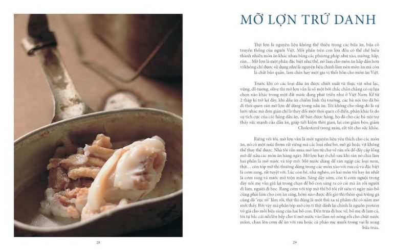 Cuốn sách gồm 60 công thức nấu ăn cả hiện đại cả cổ truyền, nhưng tất cả được sáng tạo trên nền tảng những nguyên liệu và hương vị đặc trưng của quê hương, như một cỗ máy du hành thời gian đưa bạn đi từ quá khứ tới hiện tại qua hành trình ẩm thực. Những người con sinh ra từ năm 80 trở về trước sẽ không khỏi bùi ngùi khi nhớ lại tuổi thơ bao cấp khốn khó của mình với món Canh dưa chua nấu tóp mỡ hoặc Tiết lợn xào giá đỗ đậu phụ.