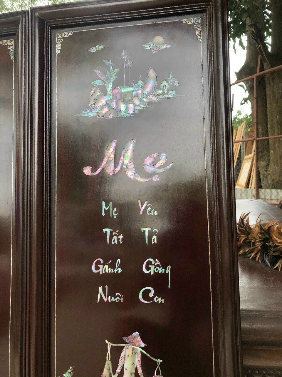 Tranh câu đối cha mẹ khảm ốc đỏ singapore giá 100tr Lh 0965608392