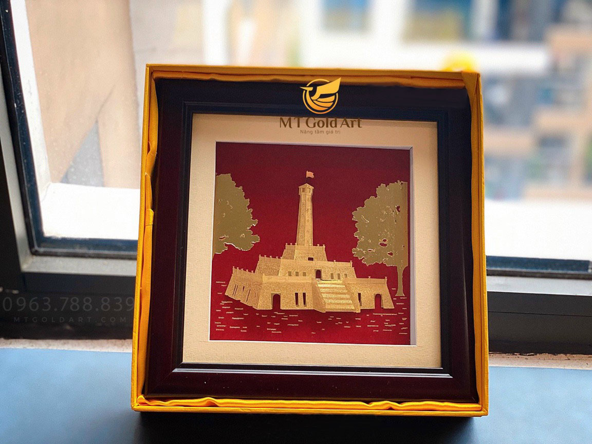 ✨Tranh cột cờ Hà Nội ( 20 x 20cm) dát vàng MT Gold Art- Hàng chính hãng, trang trí nhà cửa, quà tặng sếp, đối tác, khách hàng.