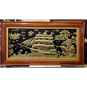 ✨Tranh đồng vàng nguyên chất liền tấm khung gỗ dổi - Thuận Buồm Xuôi Gió -A202s