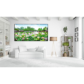 ranh treo tường tráng gương hoa sen và chữa Tâm - Đức - Nhẫn - Kích thước của tranh : Kích thước : 30x60cmx3 tấm - 40x80cmx3 tấm - 50x100cmx3 tấm - Chất liệu :