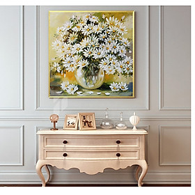Tranh treo tường vuông CÚC HỌA MI TRẮNG SIÊU ĐẸP,, phong cách CỔ ĐIỂN, sang trọng,  phong cách sơn dầu,in canvas , kèm khung màu gỗ, trắng, đen,,siêu nhẹ PVP-DC1V40