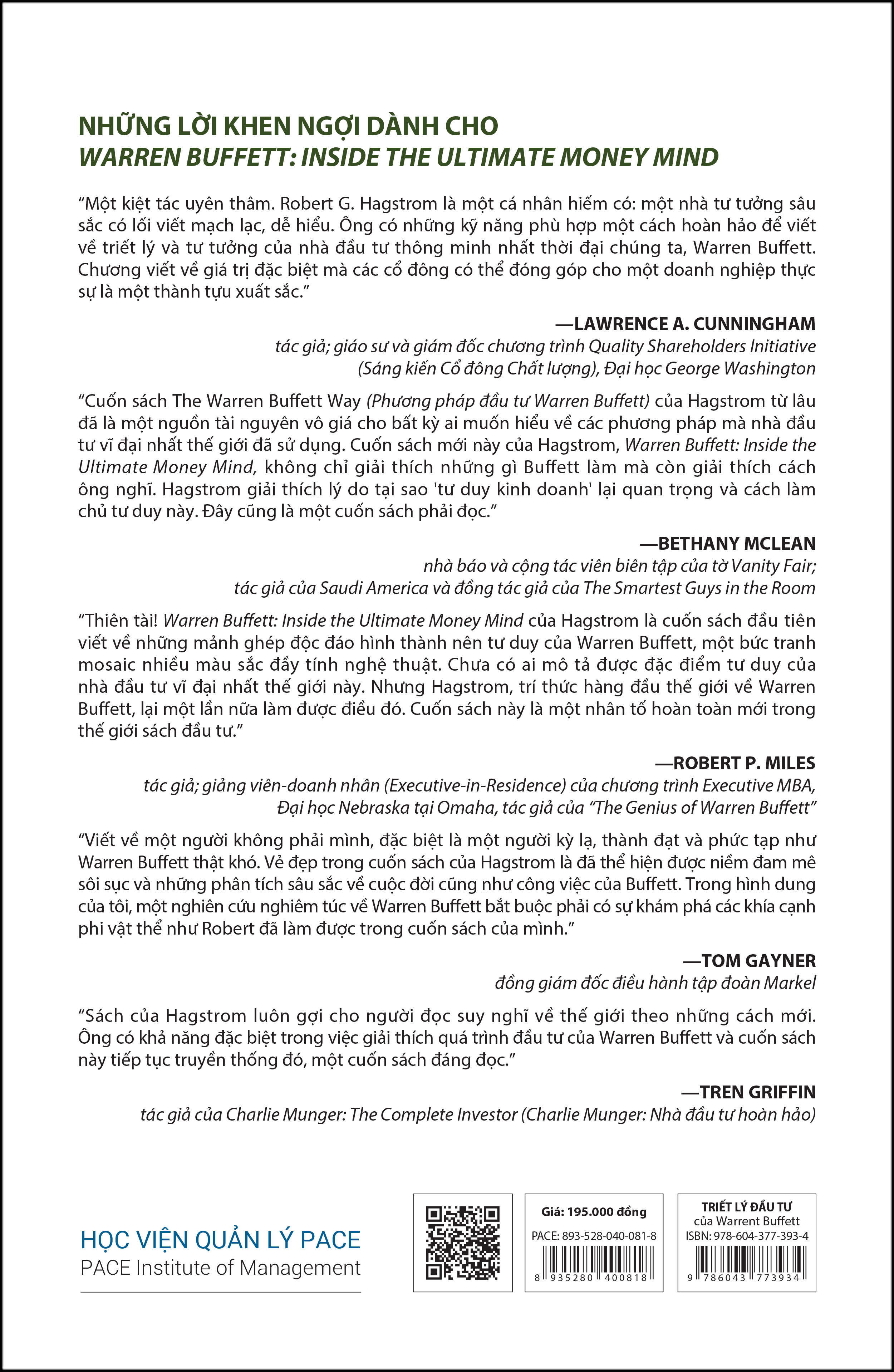 Trong suốt hai thập kỷ qua, Robert G. Hagstrom, chuyên gia hàng đầu về phân tích đầu tư tài chính, đã viết nhiều cuốn sách có giá trị về Warren Buffett, nhưng tác phẩm “Triết lý đầu tư của Warren Buffett” là cuốn sách duy nhất tập trung vào tư duy chứ không phải phương pháp đầu tư của Warren Buffett.