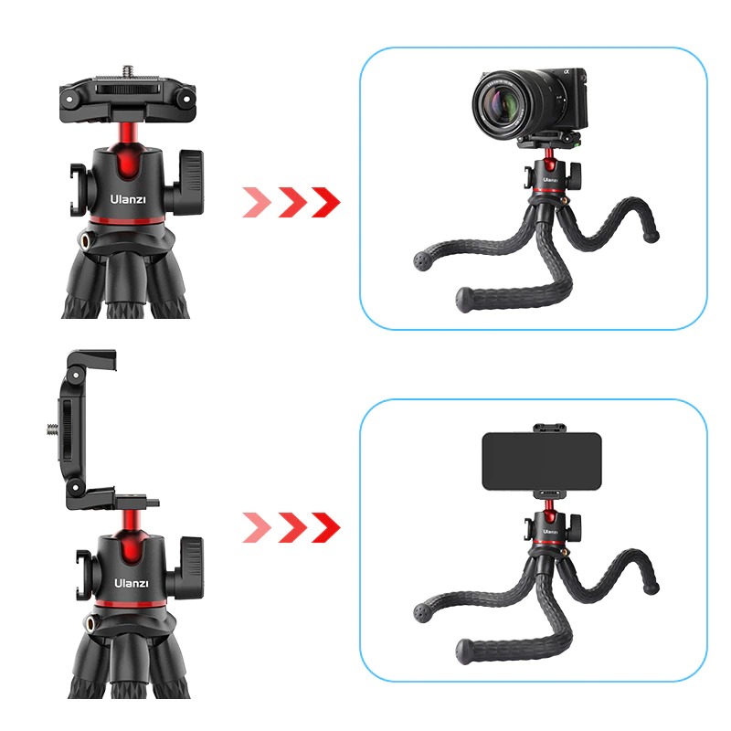 ULANZI MT-33 - HÀNG CHÍNH HÃNG - Chân Tripod bạch tuộc dành cho Máy ảnh & Điện thoại, Ballhead xoay 360° TÍNH NĂNG: - Thiết kế giá đỡ điện thoại hai trong một, giá đỡ