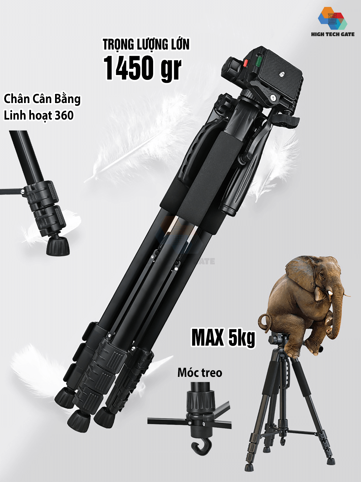 1, Tripod Yunteng VCT-691 - Số đoạn: 3 - Chất liệu: Nhôm + Nhựa ABS - Trọng lượng: Khoảng 1.55kg - Tải trọng tối đa: 3kg - Số lượng chân Số đoạn: 4 - Chân