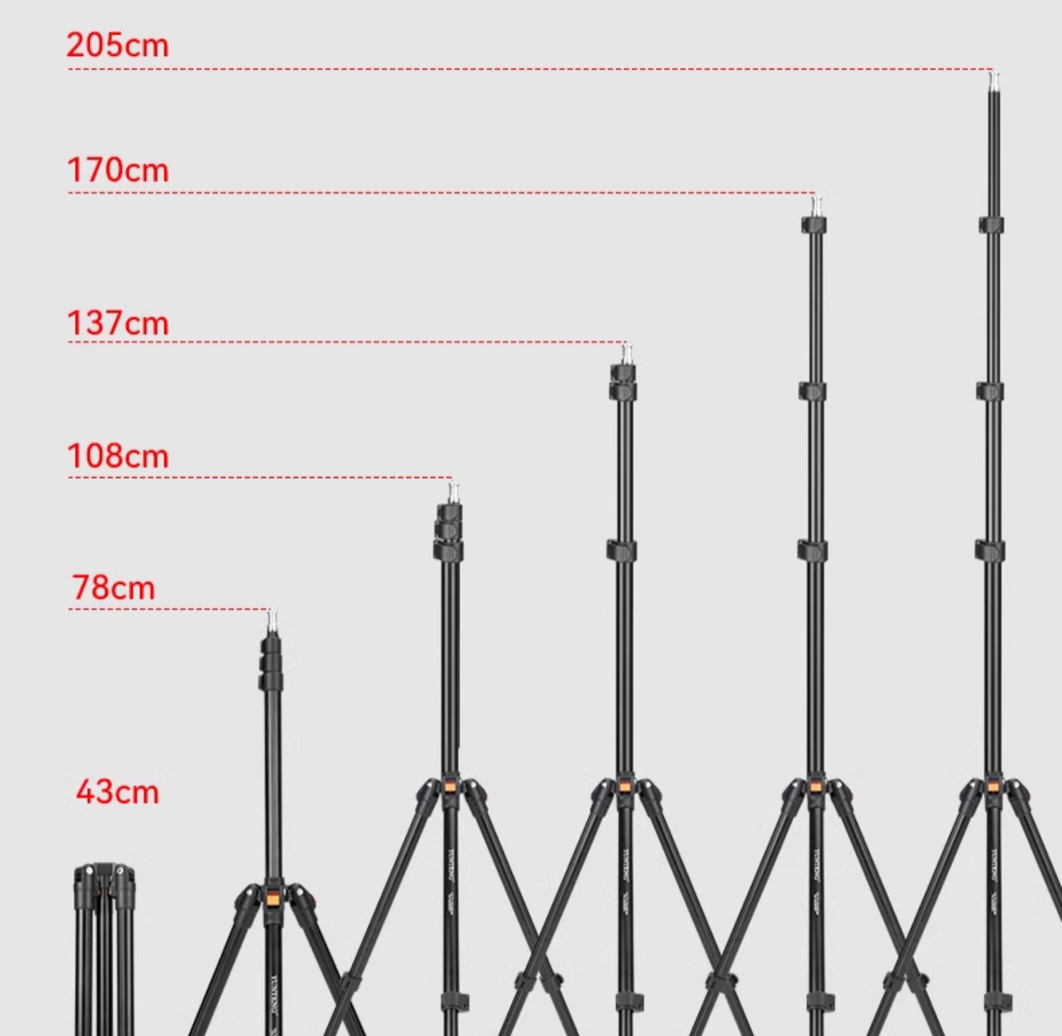 Thông tin sản phẩm: Chiều cao tối đa: 210 cm Chiều cao thu gọn: 43 cm Chiều cao tối thiểu: 45 cm Trọng lượng: 800g Tải trọng tối đa: 5 kg Đường kính ống: 25