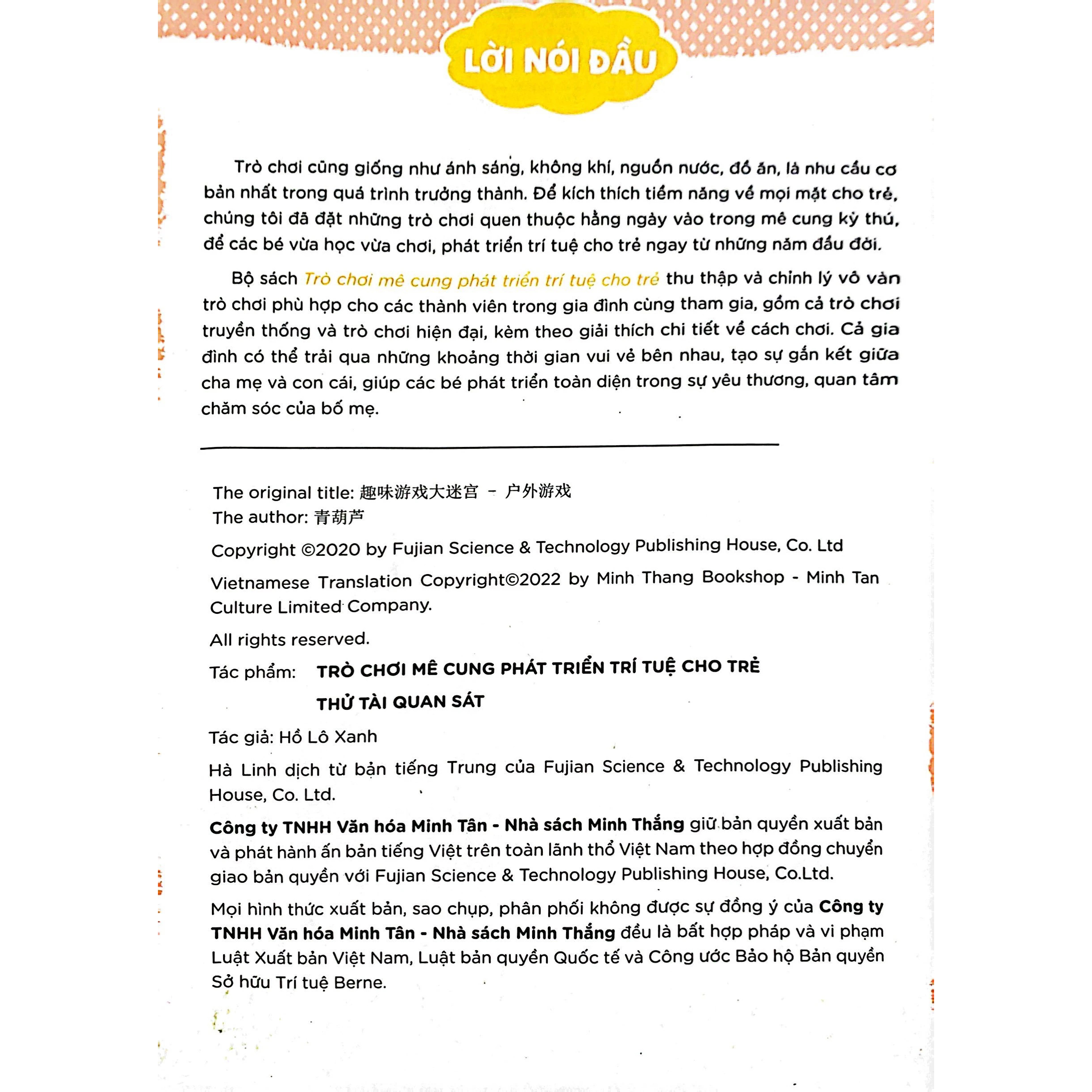 Nhà phát hành: nhà sách Bảo Châu Tác giả: Bảo Châu Năm Xuất Bản: 2022 Trang : 36 trang / 1 quyển Bìa : Mềm Khổ: 29.5 x 20.5 cm Nhà xuất bản : Nhà