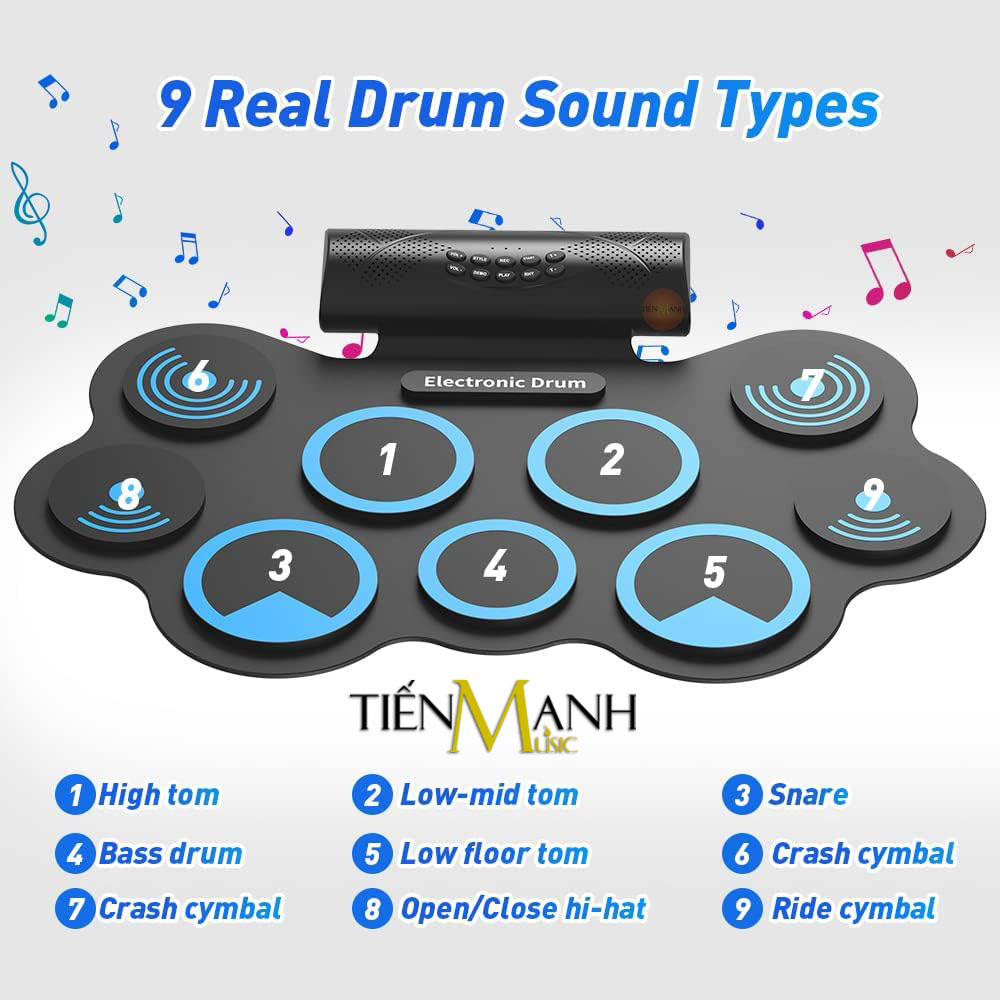 THÔNG SỐ KỸ THUẬT: - Pin sạc, hỗ trợ Bluetooth để chơi trên app (đi kèm trống, có hướng dẫn tiếng việt), và phát nhạc lên trống. - Hỗ trợ app trên ios, androi, máy