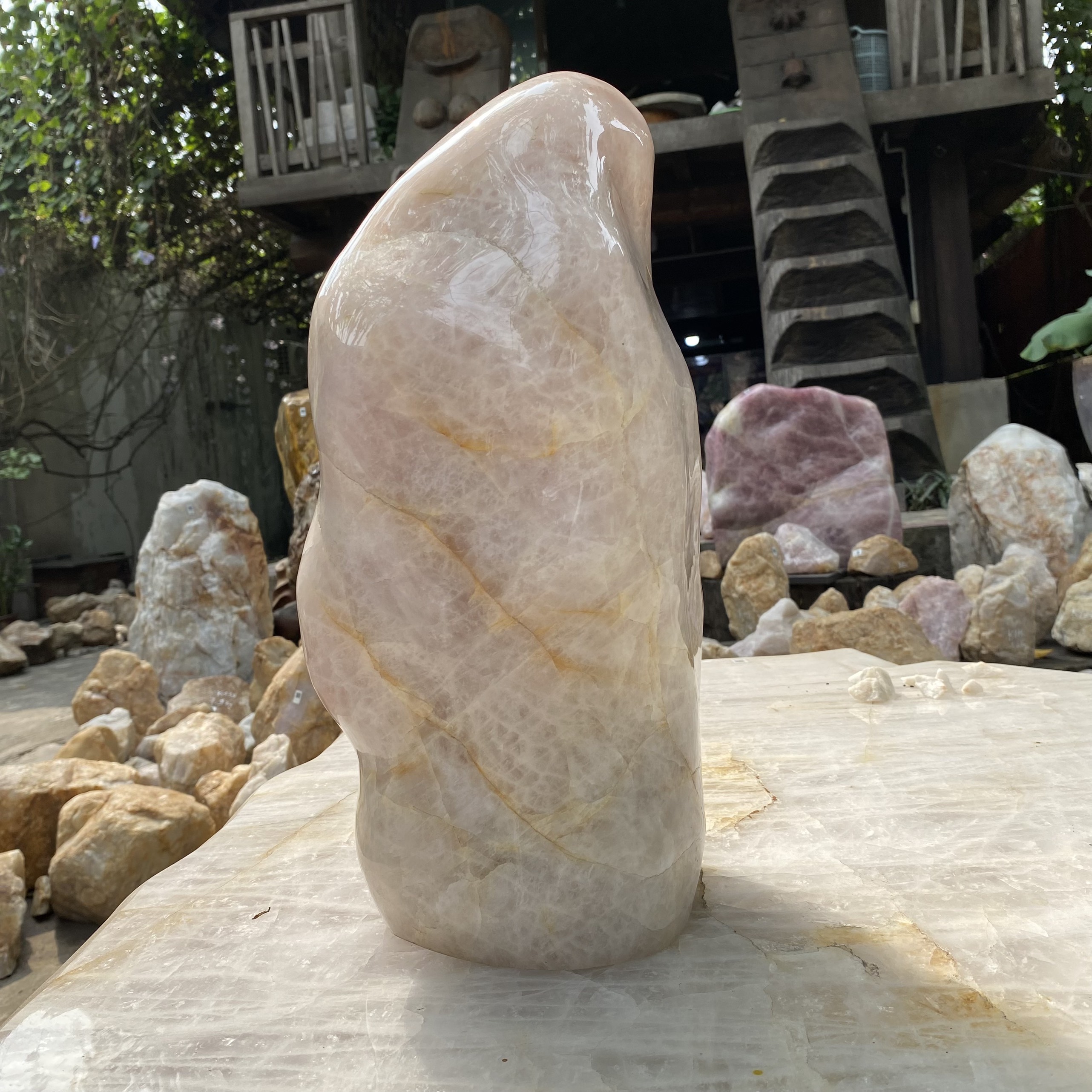 Đá thạch anh thô nguyên khối , trấn trạch , trưng bày