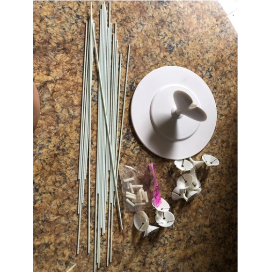 Bộ trụ bao gồm: 1 đế và 7 cây nhựa trong 1. Đế đĩa nhựa mika trong đường kính 25cm 2. Cây nhựa trong dài 70cm: 1 cây 3. Cây nhựa trong dài 60cm: 3 cây 4. Cây nhựa trong dài 40cm: 3 cây