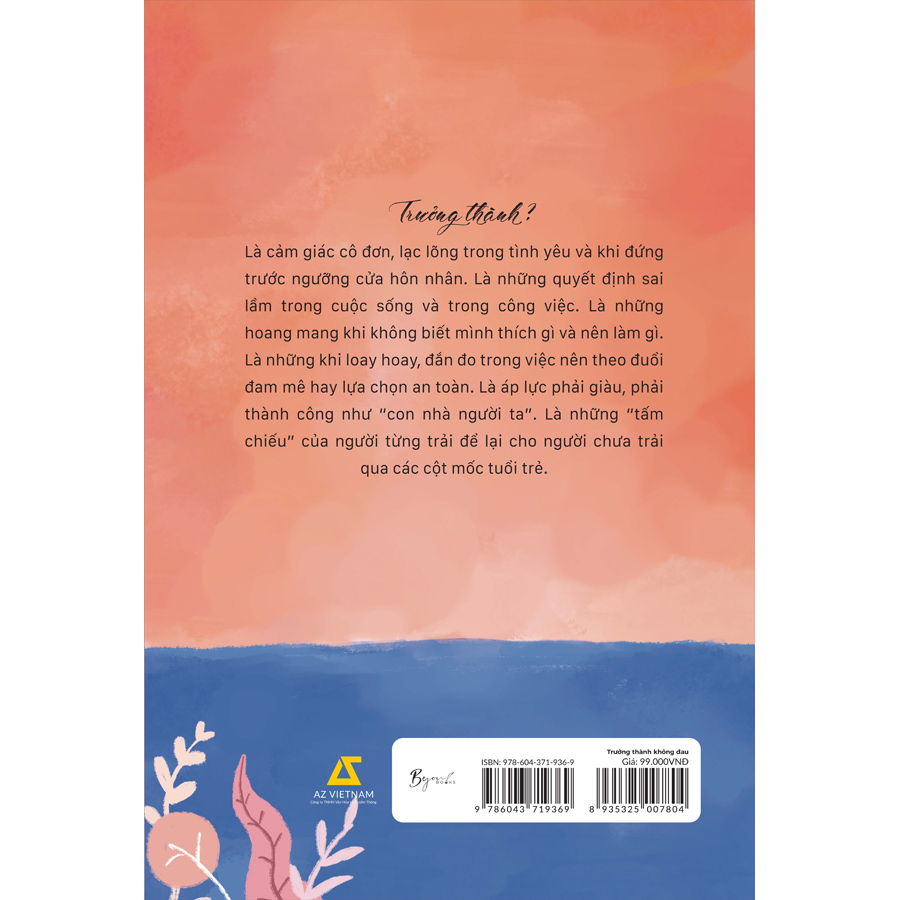 “Trưởng thành không đau” là cuốn tản văn của Khoa, một 9x đời đầu ở Sài Gòn. Tác giả đã mất tới 6 năm để hoàn thành cuốn sách này. Nó gói gọn tất cả những trải nghiệm trong hành trình trưởng thành của anh để dành tặng cho những người trẻ tuổi vẫn đang loay hoay trong một dòng xoáy mang tên “trưởng thành khuôn mẫu”.