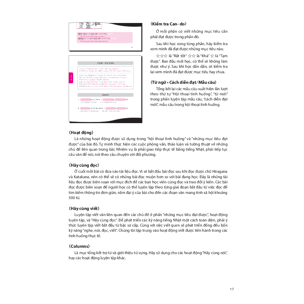 - Giới thiệu tóm tắt tác phẩm: Giáo trình được biên soạn nhằm giúp người học giao tiếp bằng tiếng Nhật tốt hơn trong các hoạt động xã hội. Các tình huống học tập trong