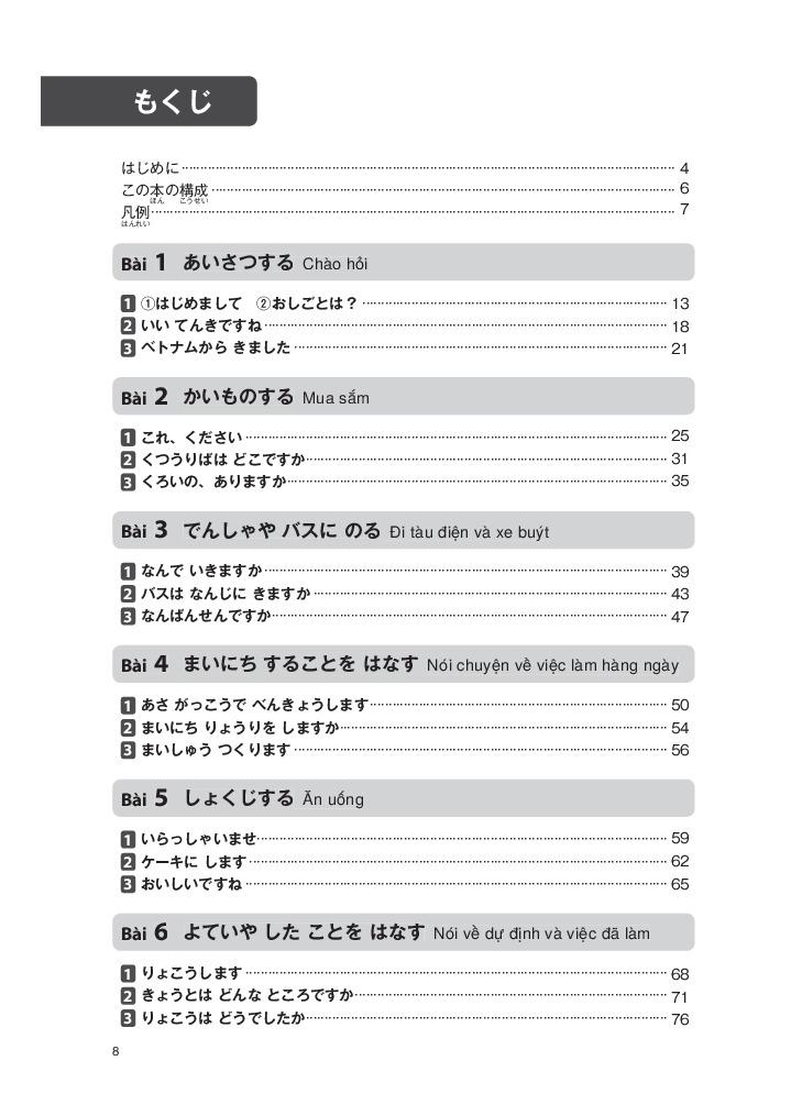 Giáo trình bao gồm 2 sách giáo khoa sơ cấp 1, 2, hai quyển Work book sơ cấp 1,2 và 1 quyển Bản dịch và giải thích ngữ pháp.