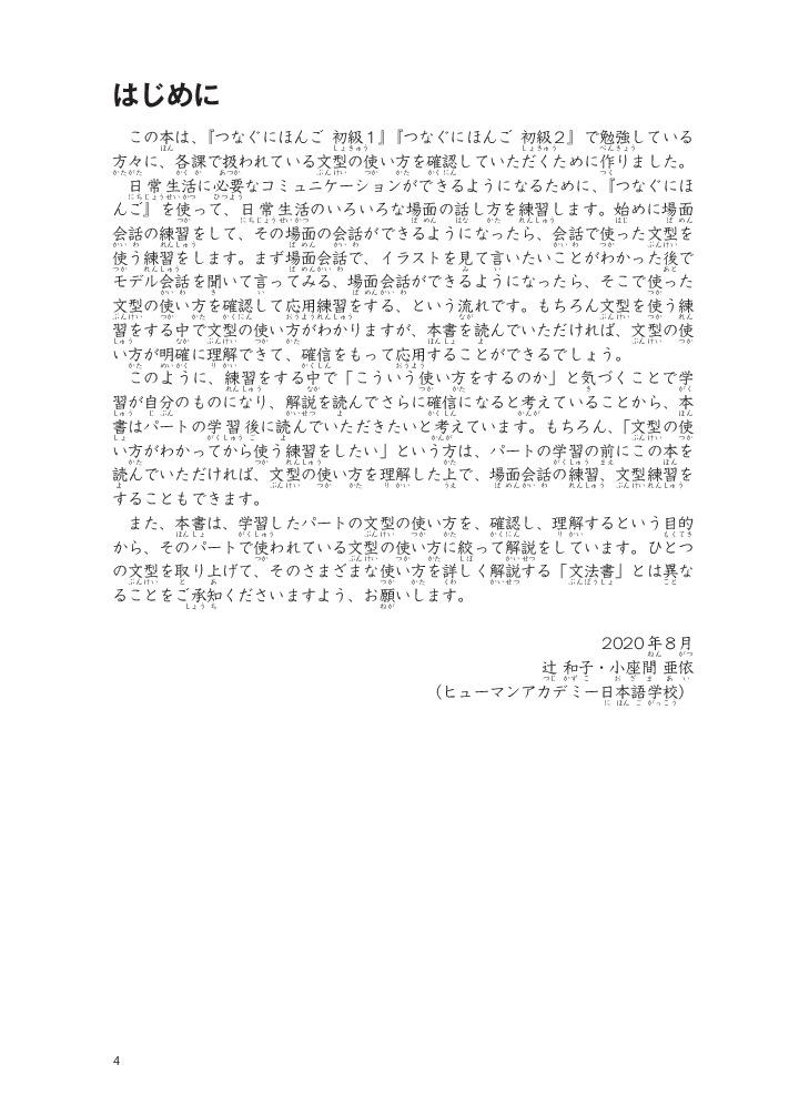 Giáo trình được biên soạn nhằm giúp người học giao tiếp bằng tiếng Nhật tốt hơn trong các hoạt động xã hội. Các tình huống học tập trong giáo trình là những tình huống thường được sử dụng để giao tiếp trên thực tế, được lựa chọn từ các lĩnh vực trong đời sống sinh hoạt, trường học và xã hội.