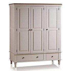 Tủ quần áo 3 cánh Shay có kích thước lớn, đáp ứng nhu cầu lưu trữ rộng rãi cho không gian phòng ngủ của bạn. Thiết kế trang nhã và đẹp mắt góp phần tối đa hóa không gian lưu trữ trong căn phòng với 2 ngăn tủ cánh và 2 ngăn kéo sâu giúp lưu trữ toàn bộ quần áo và các vật dụng gọn gàng và ngăn nắp. Ẩn bên trong 2 ngăn tủ cánh lớn và nhỏ là các thanh treo đồ chắc chắn. Các ngăn kéo được chế tác thủ công, kết cấu cực kì chính xác, đảm bảo về chất lượng và độ bền. Phần thân tủ được sơn màu trắng xám, tạo sự tương phản tuyệt đẹp với màu nâu gỗ tự nhiên. Ngoài ra, còn có các chi tiết thiết kế được trau chuốt tỉ mỉ, đường viền trang trí tinh tế, chân trụ bo tròn, nhẹ nhàng, kết hợp tay cầm nhỏ gọn, tiện lợi. Sản phẩm thuộc bộ sưu tập Shay rất đa dạng về phong cách và mẫu mã để quý khách có thể lựa chọn cho ngôi nhà của mình.