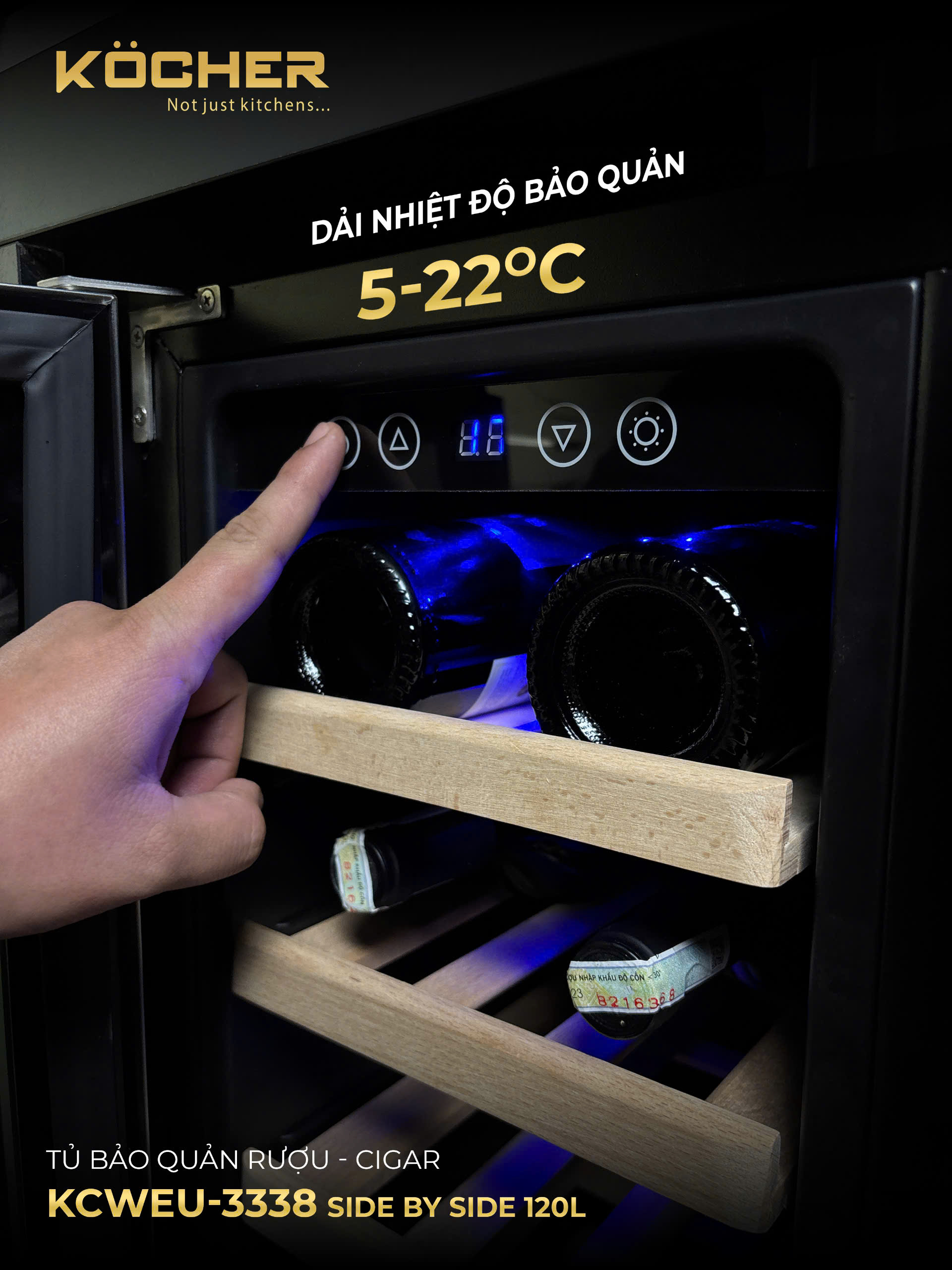 ✨TỦ BẢO QUẢN RƯỢU - CIGAR KCWEU-3338 (SIDE BY SIDE 120L). Hàng chính hãng