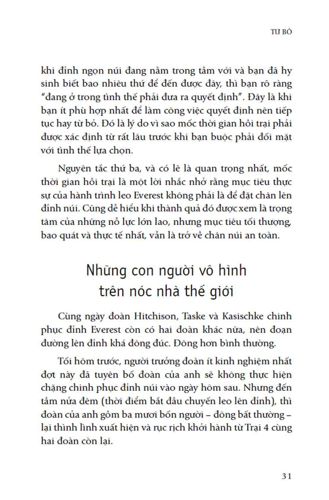 Với những phân tích sâu sắc, chặt chẽ và dẫn chứng cụ thể, Annie Duke sẽ giúp bạn đọc học cách mở khóa thành công theo một cách hoàn toàn mới mẻ. Cho dù bạn đang phải đối mặt với một quyết định kinh doanh hay một lựa chọn cá nhân quan trọng, việc nắm vững kỹ năng từ bỏ sẽ giúp bạn có những bước tiến vững chắc trên hành trình của m.ình. Chỉ khi bạn biết buông đúng lúc, bỏ đúng việc, bạn mới có thể tránh được những rủi ro tiềm tàng, đồng thời tiết kiệm được thời gian, công sức và tiền bạc cho những mục tiêu tốt hơn.