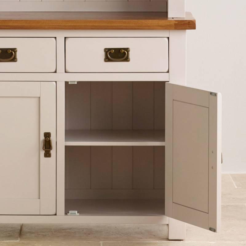 Tủ chén cao Kemble loại nhỏ được làm từ gỗ sồi trắng Mỹ nhập khẩu, có thiết kế phù hợp với nội thất phòng ăn của từng gia đình Việt. Hai ngăn tủ rộng rãi và các ngăn kéo lớn nhỏ được làm thủ công, kết cấu cực kỳ chắc chắn, đáp ứng một lượng lưu trữ tuyệt vời. Các kệ tủ là nơi để trưng bày các vật dụng chén bát, gốm sứ... tô điểm cho gian bếp thêm phần sang trọng. Mặt kệ giữa sẽ là nơi bày biện và sắp xếp những món ăn hàng ngày rất tiện lợi. Các chi tiết cắt góc, vát cạnh mềm mại, kết hợp tay cầm đồng cổ điển là đặc trưng của toàn bộ sưu tập Kemble mang phong cách thanh lịch, hiện đại.