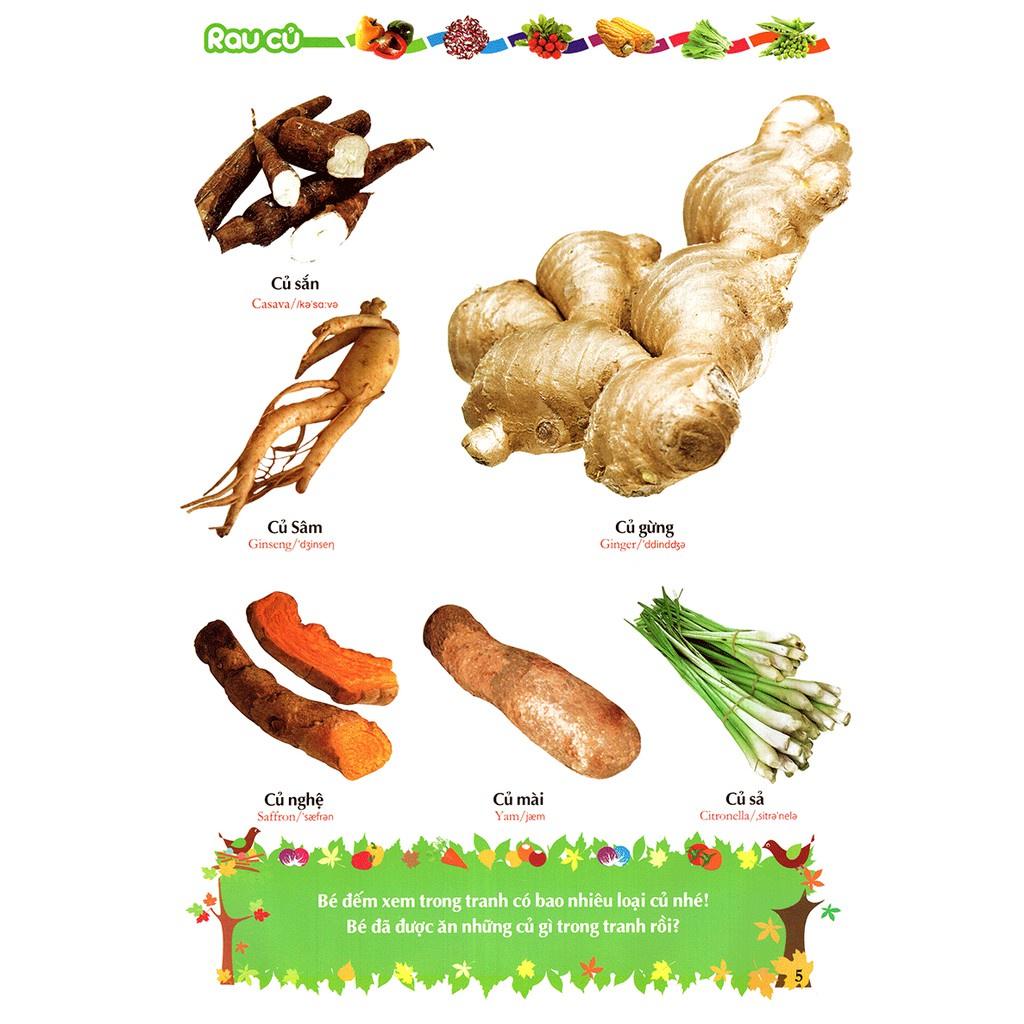 Cuốn sách với nhiều hình ảnh sinh động về các loại rau củ quả khác nhau giúp bé phát triển khả năng nhận biết. Cuốn sách còn là bộ sưu tập với nhiều hình ảnh gần gũi quen thuộc giúp bé trở nên thích thú.