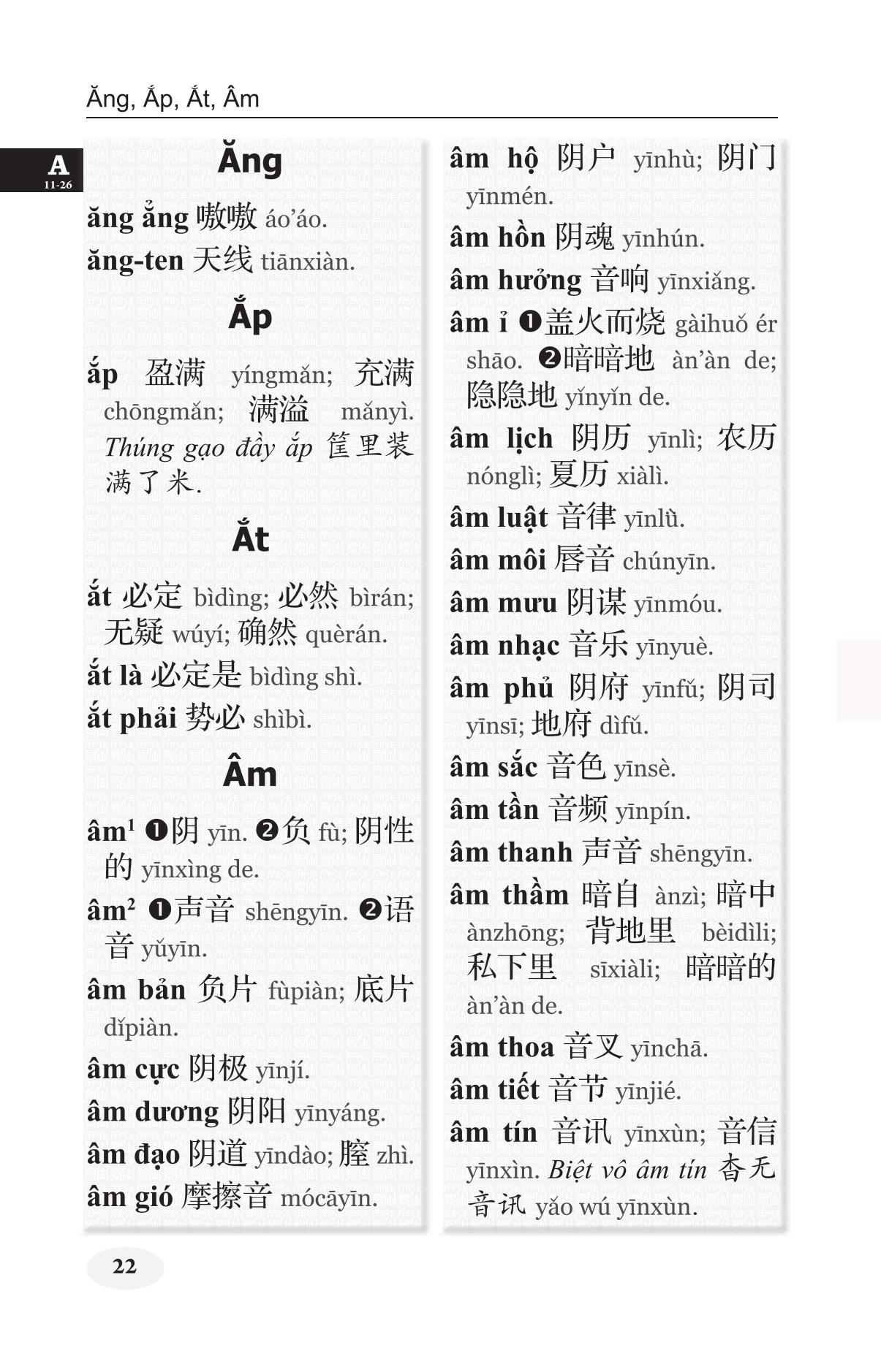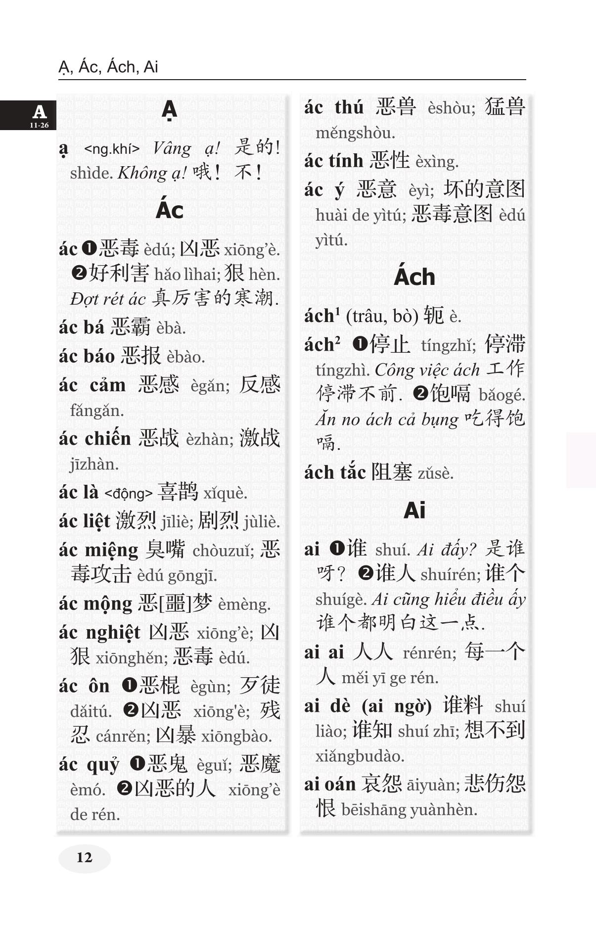 Khổ 10x16, bìa cứng, 1424 trang, in giấy trắng đẹp Nhằm đáp ứng nhu cầu tra cứu từ Việt sang Hán của người học tiếng Hán, nhất là để phục vụ cho đối tượng học