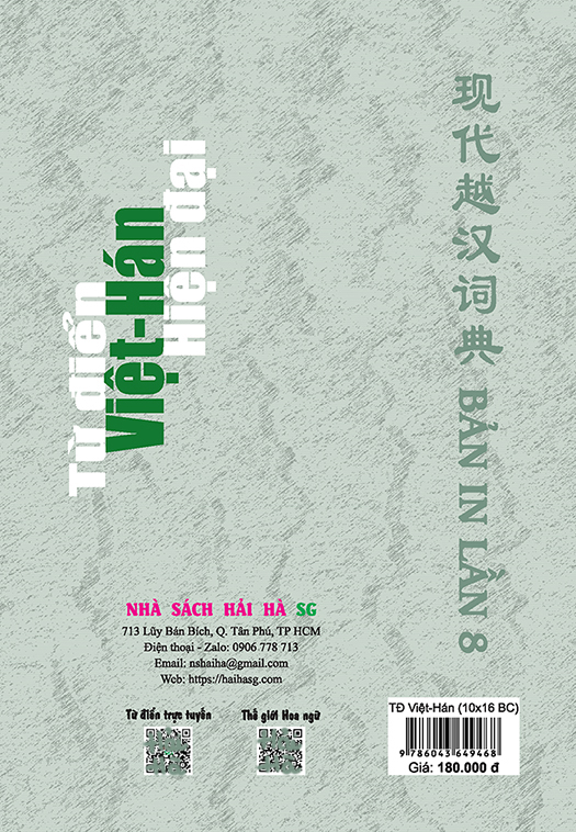 Nhằm đáp ứng nhu cầu tra cứu từ Việt sang Hán của người học tiếng Hán, nhất là để phục vụ cho đối tượng học sinh, sinh viên, nhà sách Hải Hà SG xin trân trọng giới thiệu đến các bạn quyển TỪ ĐIỂN VIỆT - HÁN HIỆN ĐẠI.