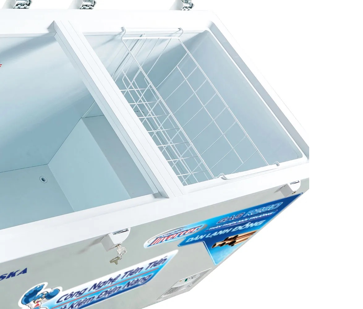 Thiết kế sang trọng, hiện đại: - Tủ Đông Alaska HB-550CI có tông mầu trắng sang trọng, thiết kế hiện đại với 2 nắp mở tiện lợi dễ sắp xếp phân loại sản phẩm. Công